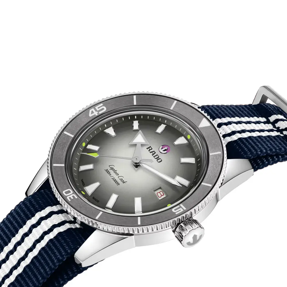Die Captain Cook ist die ideale Wahl für alle, die eine stilvoll markante und funktionelle Uhr mit Retro-Charakter suchen, die sowohl für Unterwasserabenteuer als auch für das tägliche Tragen geeignet ist - und dabei die klare Rado-Handschrift trägt.