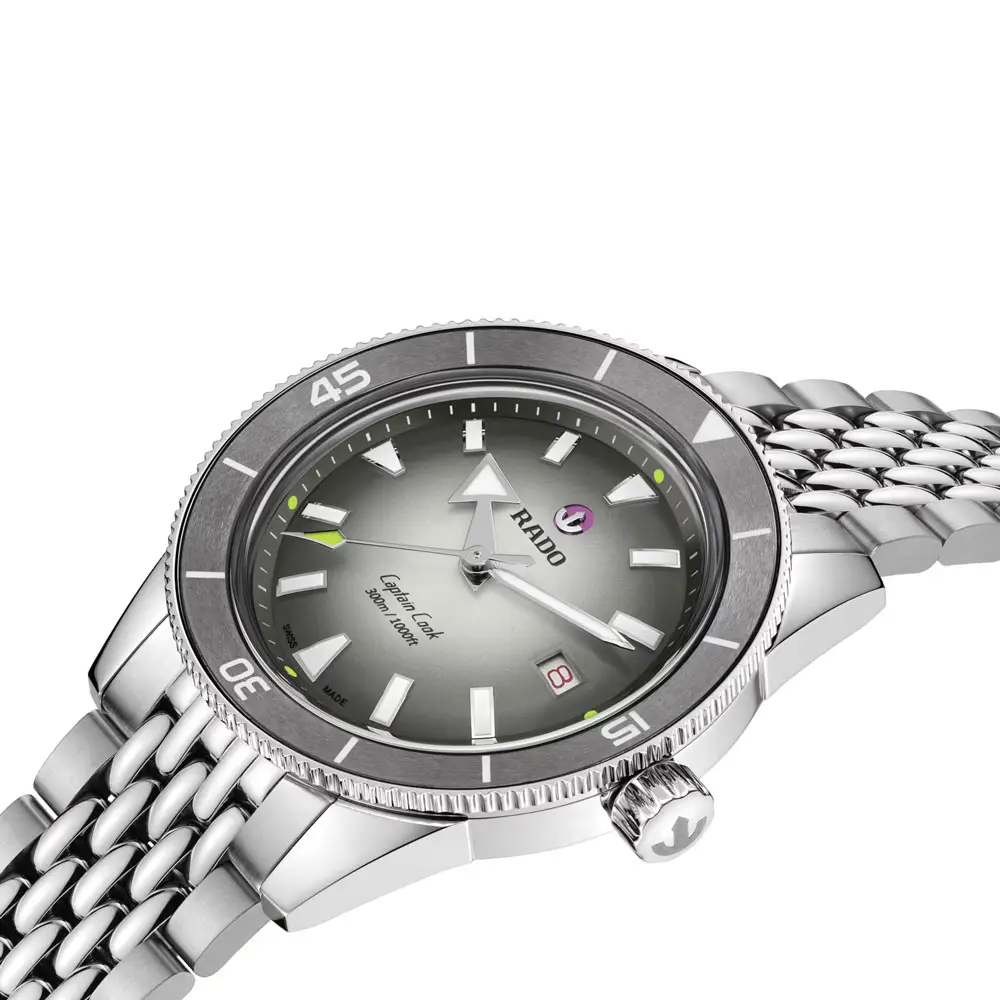 Die Captain Cook Kollektion von Rado ist eine ikonische Kollektion, die das Design der Taucheruhren aus den späten 1960er Jahren wieder aufleben lässt, kombiniert mit den Materialinnovationen von heute und Schweizer Präzision. Das Originalmodell von 1962 diente als Inspiration für die Kollektion, die sich durch eine Vintage-Ästhetik, eine drehbare Lünette und klassische Linien auszeichnet, jedoch mit einer modernen Note versehen ist.