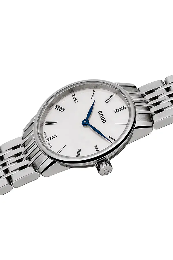 Das Edelstahlarmband mit Doppelfaltschließe (Butterfly-Schließe) sorgt für Tragekomfort und Sicherheit. Die Rado Coupole Classic R22897943 ist die perfekte Wahl für Damen, die zurückhaltenden Luxus, hochwertige Verarbeitung und zeitloses Design schätzen.