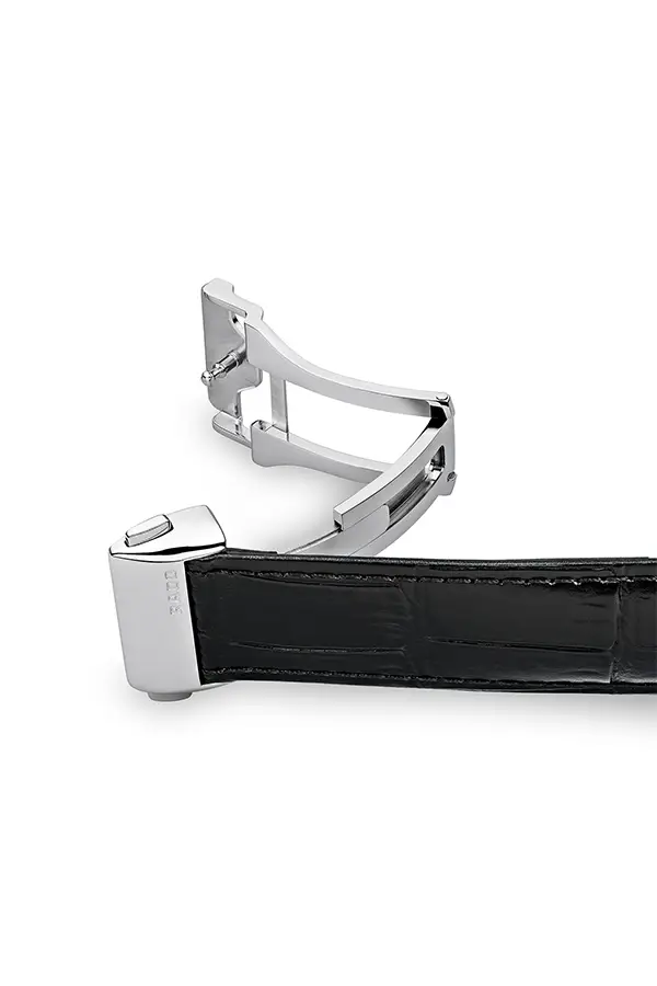 Das schwarze Lederarmband mit Faltschließe sorgt für hohen Tragekomfort und setzt einen dezenten Kontrast zum hellen Zifferblatt. Mit einer Wasserdichtigkeit von bis zu 50 Metern (5 ATM) ist die Uhr ideal für den Alltag geeignet. Im Inneren arbeitet ein präzises Quarzwerk, das Zuverlässigkeit und geringen Wartungsaufwand bietet.
