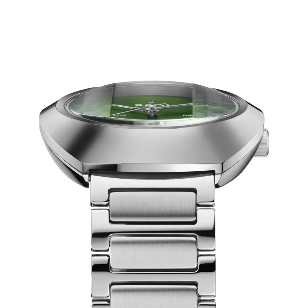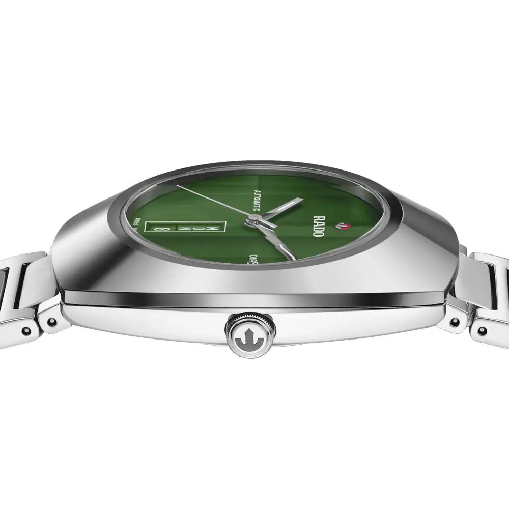 Die Rado DiaStar Original zählt zu den ikonischen Modellen der Marke Rado und steht seit den 1960er-Jahren für Innovation, Widerstandsfähigkeit und zeitloses Design. Das markante Edelstahlgehäuse mit einer Lünette aus Ceramos™ bietet eine außergewöhnliche Kratzfestigkeit und verleiht der Uhr eine technisch-elegante Ausstrahlung. Das grüne Zifferblatt mit feiner Struktur setzt einen modernen Akzent und bewahrt zugleich den klassischen Charakter der DiaStar-Kollektion.