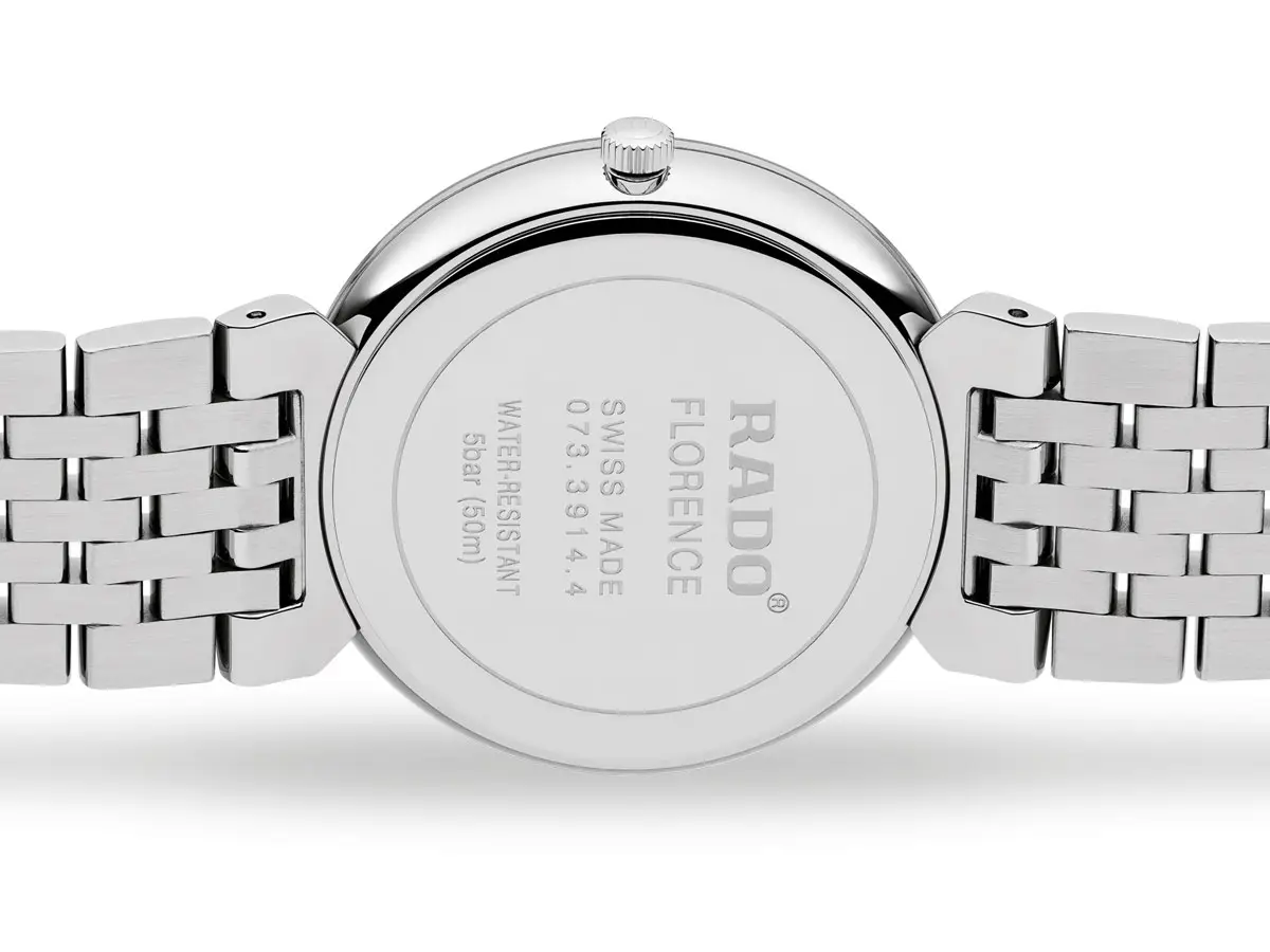 Mit einer Wasserdichtigkeit bis 50 Meter (5 bar) ist die Rado Florence Classic Diamonds die perfekte Wahl für Frauen, die klassischen Luxus, moderne Handwerkskunst und dezente Schönheit schätzen – ein echtes Symbol Schweizer Eleganz.