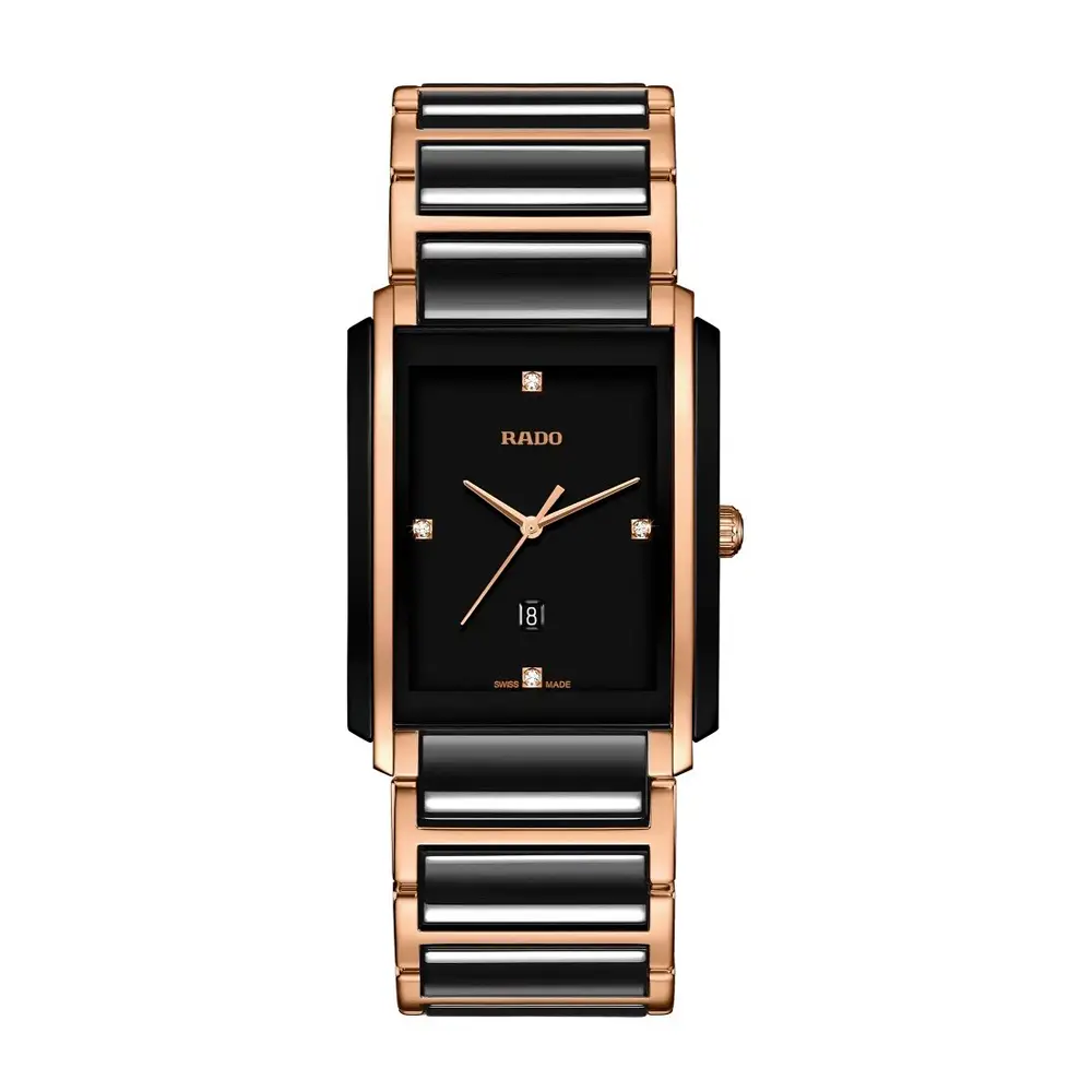 Die Rado Integral R20207712 vereint Minimalismus, Luxus und technologische Innovation in vollendeter Harmonie – ganz im Sinne dieser ikonischen Kollektion seit 1986. Das Modell kombiniert schwarze Hightech-Keramik mit Edelstahl und PVD-Beschichtung, was ihm Eleganz, Modernität und Kratzfestigkeit verleiht. Das rechteckige 31 mm Gehäuse geht nahtlos in das integrierte Keramik-Stahl-Armband über und sorgt für höchsten Tragekomfort.