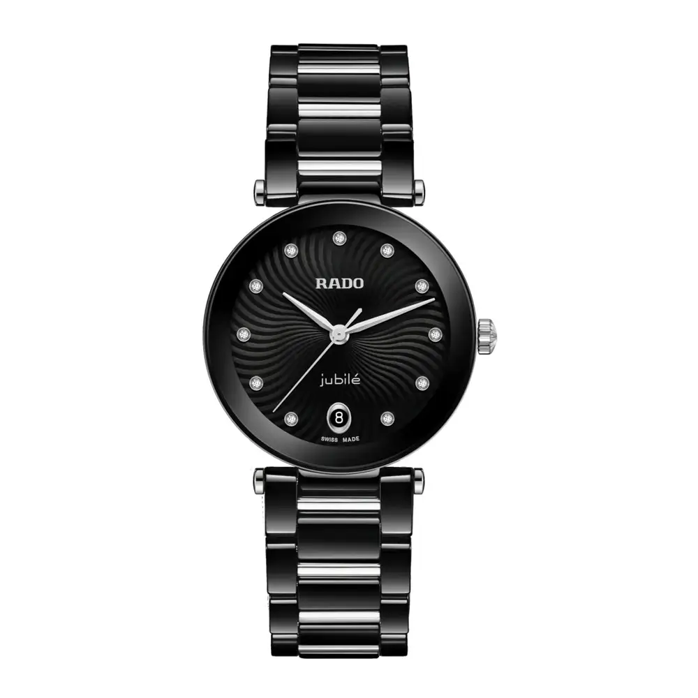 Die Uhr ist mit einem Armband aus schwarzer Hightech-Keramik kombiniert mit Edelstahlelementen ausgestattet und wird mit einer Dreifach-Faltschließe für bequemen und sicheren Tragekomfort geschlossen. Die Rado LaCoupole Diamonds ist die perfekte Wahl für Frauen, die eine Kombination aus zeitloser Ästhetik, technischer Präzision und dem subtilen Funkeln von Diamanten suchen.