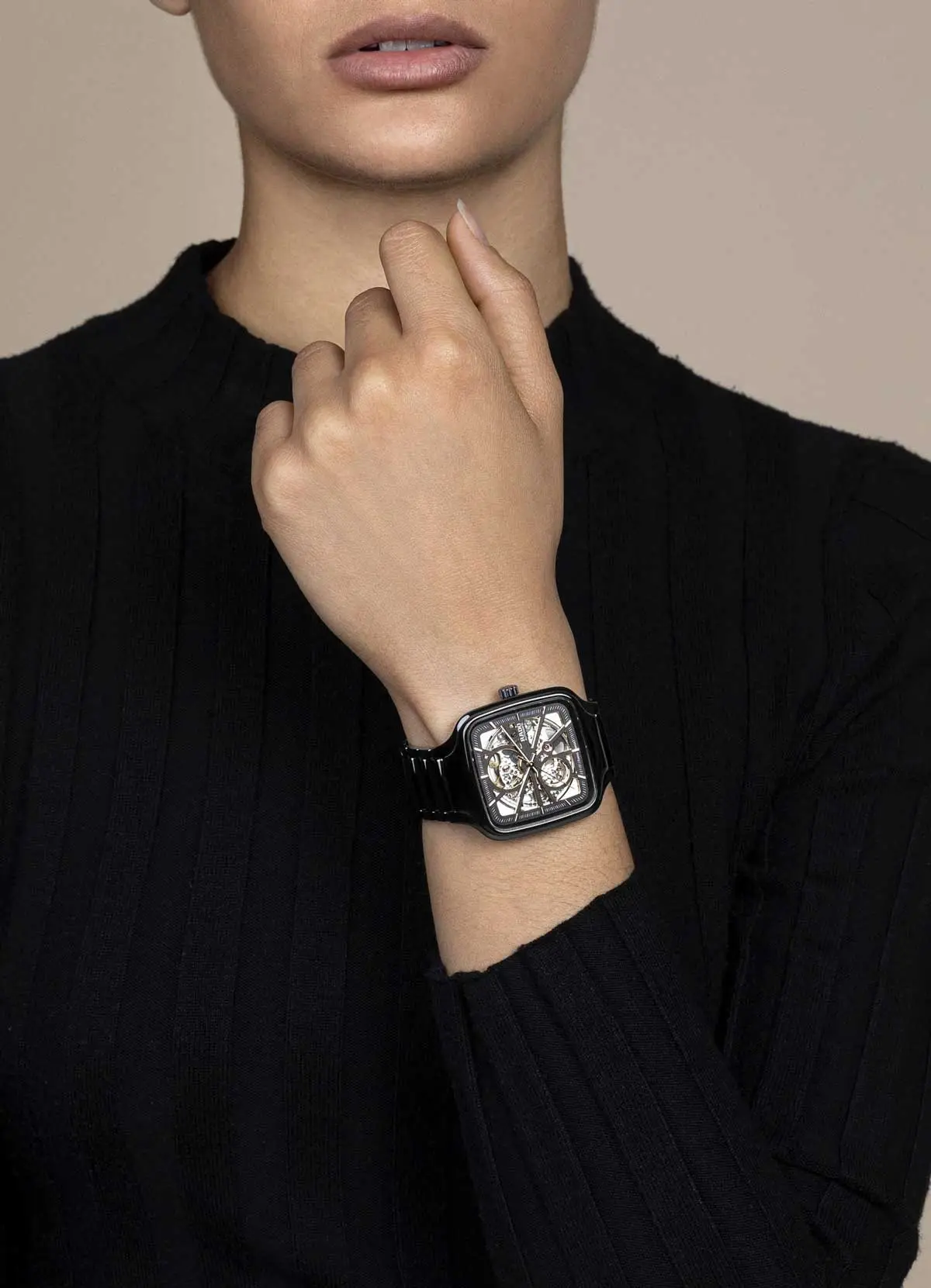 Die True Square Modelle zeichnen sich durch klare Linien, abgerundete Ecken und ein leicht gewölbtes Glas aus, das der Uhr eine moderne Eleganz verleiht. Es gibt Optionen mit Automatikwerken, skelettierten Zifferblättern oder minimalistischen Zifferblättern mit Liebe zum Detail und zur Ästhetik.