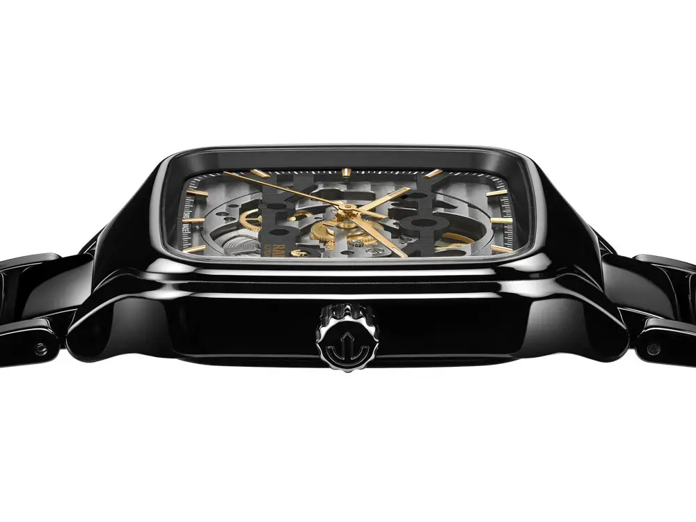 Mit einem integrierten mattschwarzen Keramikarmband und einer Wasserdichtigkeit bis 50 Meter (5 bar) ist die Rado True Square Automatic Skeleton ein Symbol für Innovation, Präzision und modernen Luxus – geschaffen für Uhrenliebhaber, die technische Schönheit und avantgardistisches Design schätzen.