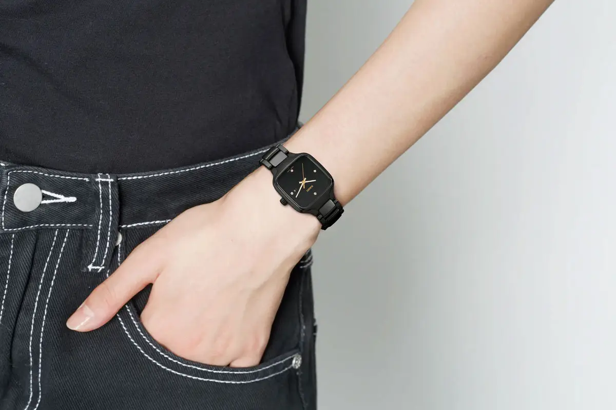 Das schwarze Keramikarmband mit Faltschließe passt perfekt zum Gehäuse und bietet sicheren, komfortablen Halt. Mit einer Wasserdichtigkeit von 5 ATM (50 Meter) ist die Uhr alltagstauglich – selbst bei Regen oder Händewaschen.
