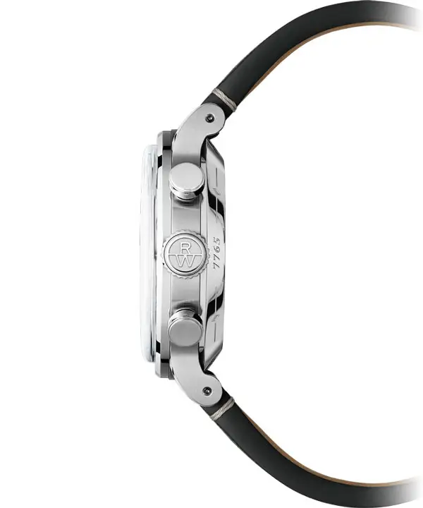 Im Inneren arbeitet das automatische Kaliber RW5030 mit einer Frequenz von 28.800 Halbschwingungen pro Stunde und einer Gangreserve von 56 Stunden. Durch den transparenten Gehäuseboden lässt sich der dekorierte Rotor und die feine Verarbeitung bewundern. Das Tri-Compax-Chronographenlayout betont den sportlich-eleganten Charakter der Uhr.