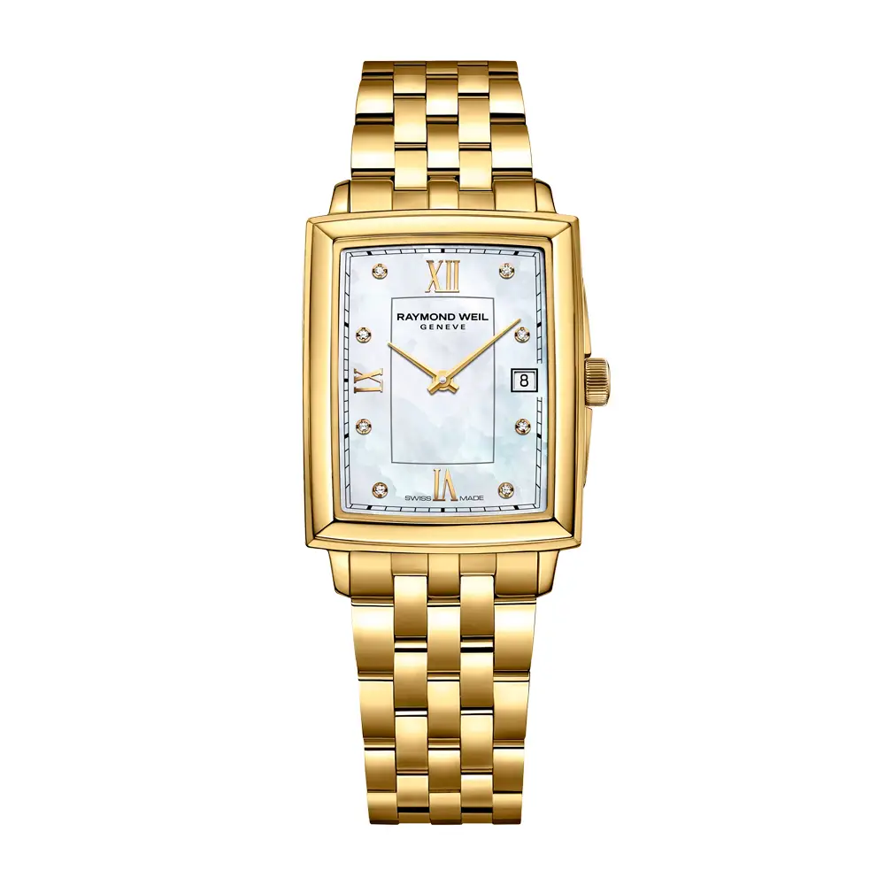 Die Raymond Weil Toccata 5925-P-00995 ist eine luxuriöse Damenuhr, die klassische Eleganz mit dem feinen Glanz von Gold und Diamanten kombiniert. Dieses Modell aus der Toccata-Kollektion ist ideal für Frauen, die ein stilvolles, aber zugleich dezentes Accessoire für den Alltag und besondere Anlässe suchen.