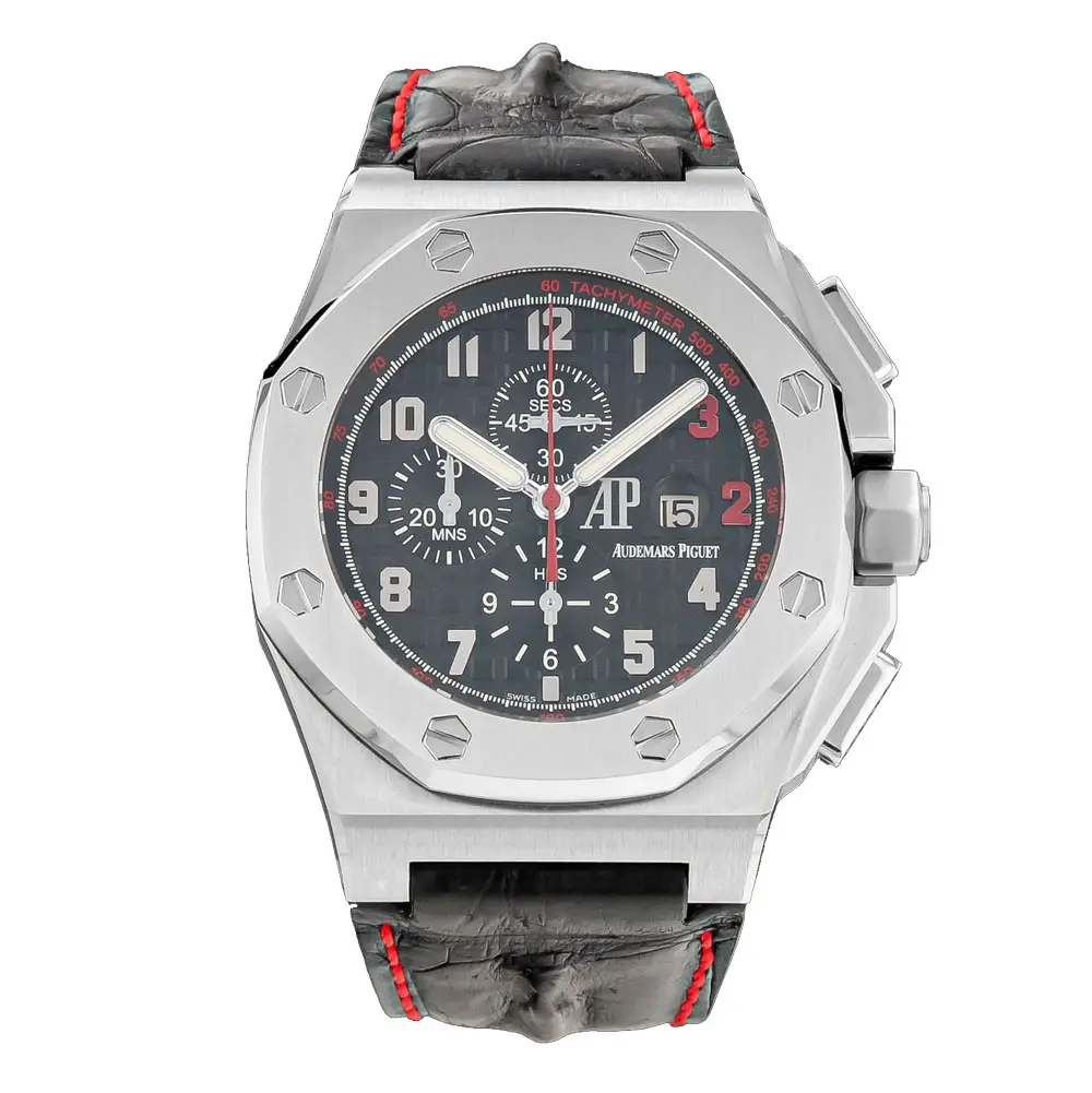 Die Royal Oak Offshore ist eine kühne Neuinterpretation der ursprünglichen Royal Oak, die 1993 von Audemars Piguet als Ausdruck extremer sportlicher Ästhetik und robusten Charakters eingeführt wurde. Während die Royal Oak von 1972 die Luxus-Sportuhr definierte, hat die Offshore die Grenzen noch weiter verschoben - hin zu massiven Proportionen, technischer Widerstandsfähigkeit und visueller Intensität.