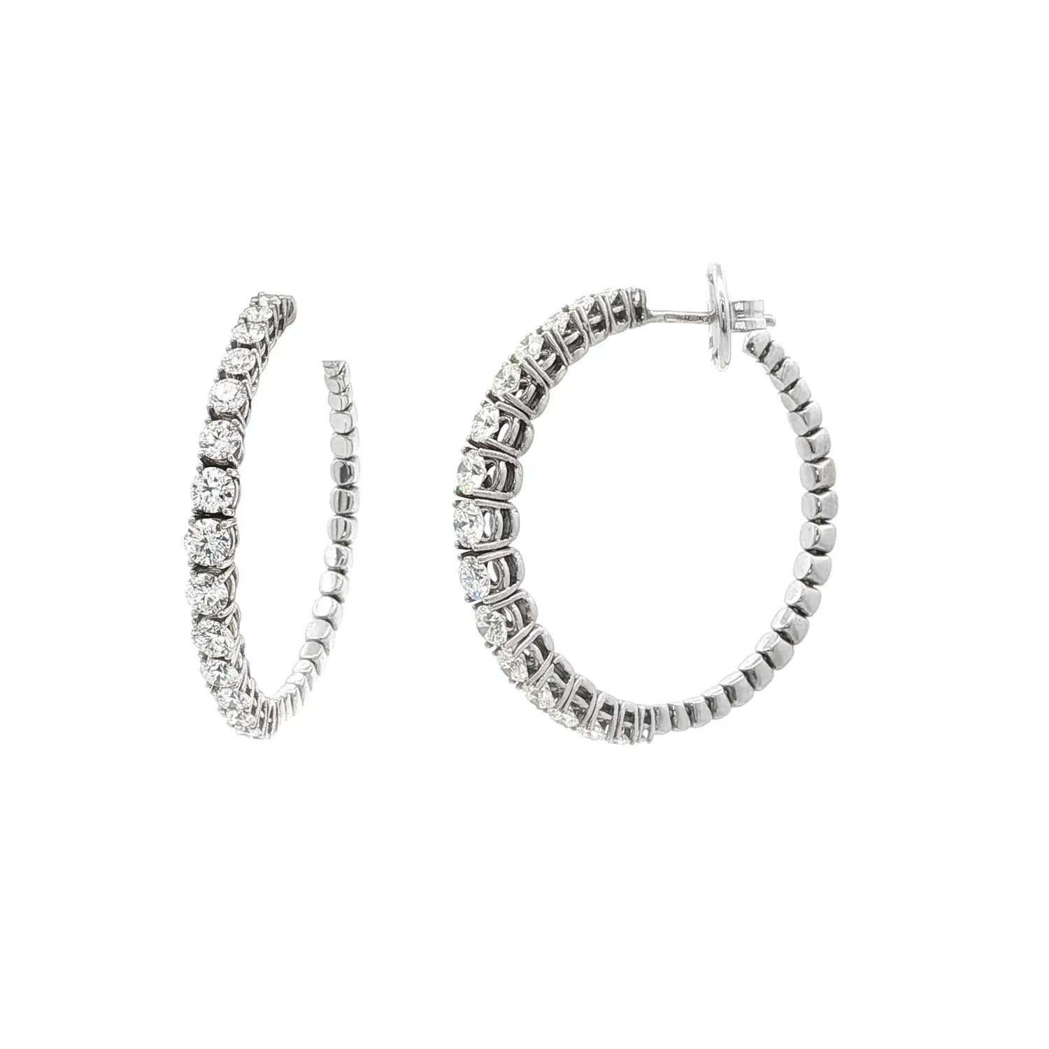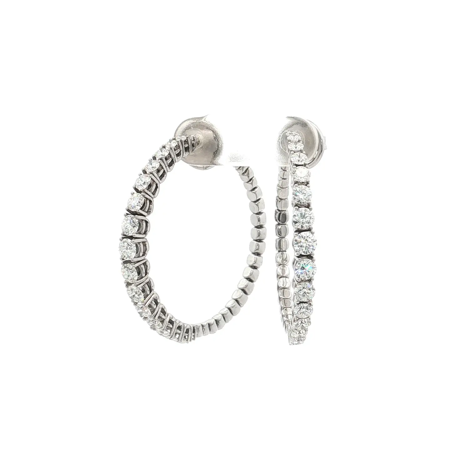 Diese eleganten Creolen aus Weißgold verkörpern zeitlose Schönheit und strahlende Eleganz. Jede der Ohrringe ist mit einer Reihe von brillantgeschliffenen Diamanten besetzt, die das Licht in allen Facetten reflektieren und für ein außergewöhnliches Funkeln sorgen. Die runde Form verleiht dem Schmuckstück Harmonie und feminine Ausstrahlung – ein Sinnbild für Stil, Luxus und Raffinesse.