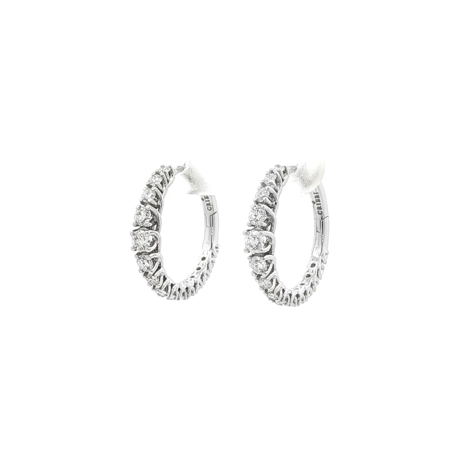 Diese stilvollen Kreolen von Crieri sind aus 18 kt Weißgold (750/1000) gefertigt und mit einer hochglanzpolierten Oberfläche versehen, die dem Schmuckstück besondere Eleganz verleiht. Das Klapp-System sorgt für angenehmes Tragegefühl und sicheren Sitz.