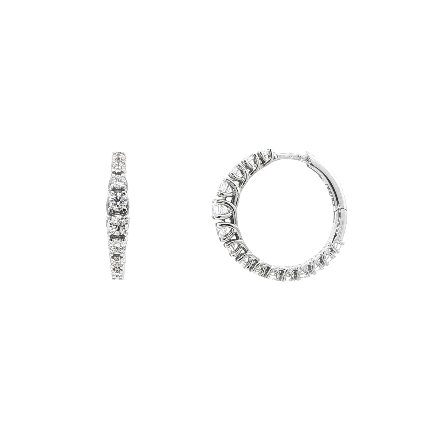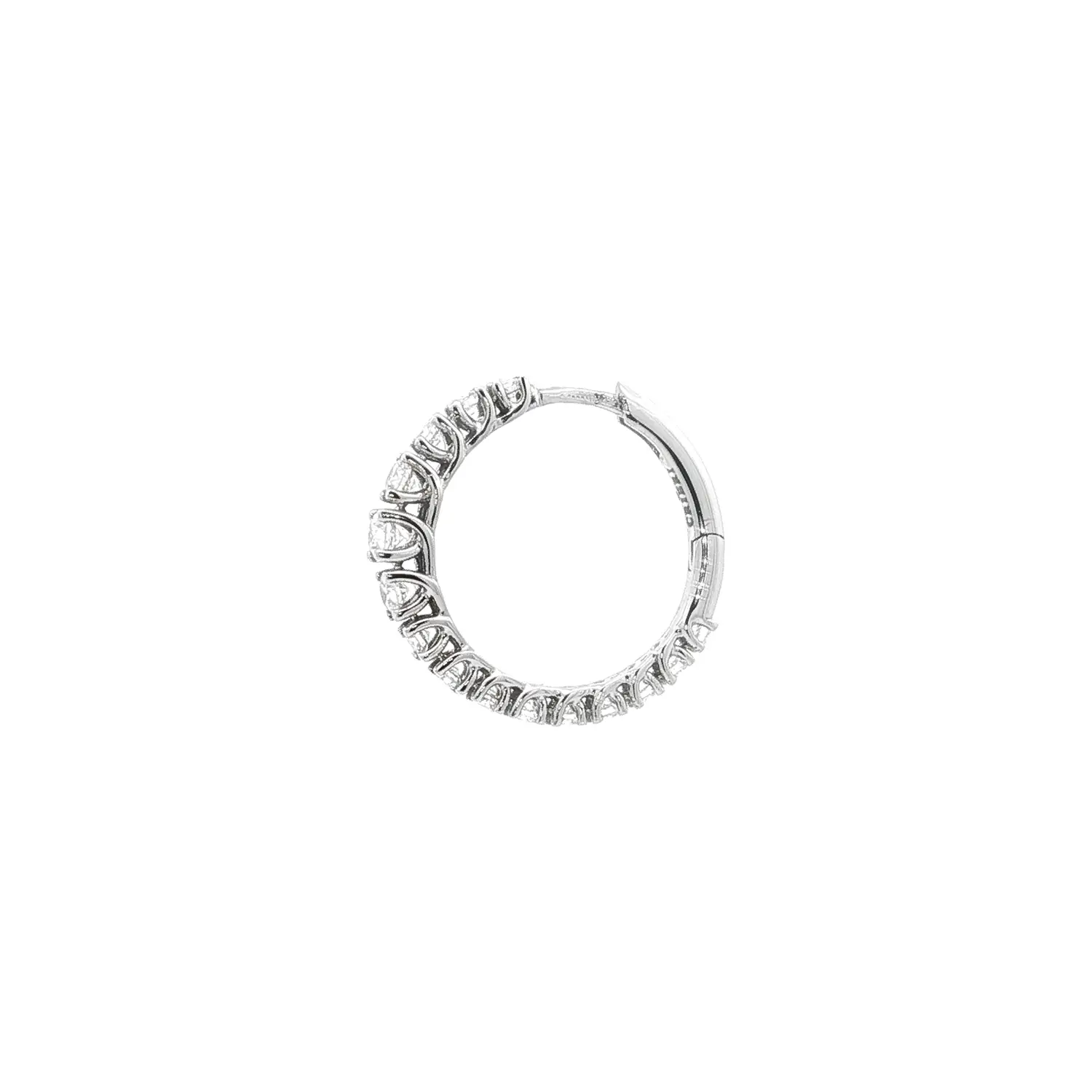 Die Ohrringe sind mit 30 natürlichen weißen Diamanten im Rundschliff (Round) besetzt, insgesamt 1,05 ct, Farbe G–H, Reinheit VS. Jeder Stein wurde sorgfältig von Hand gefasst, um eine gleichmäßige Lichtlinie zu bilden, die den Kreolen eine edle Ausstrahlung verleiht.