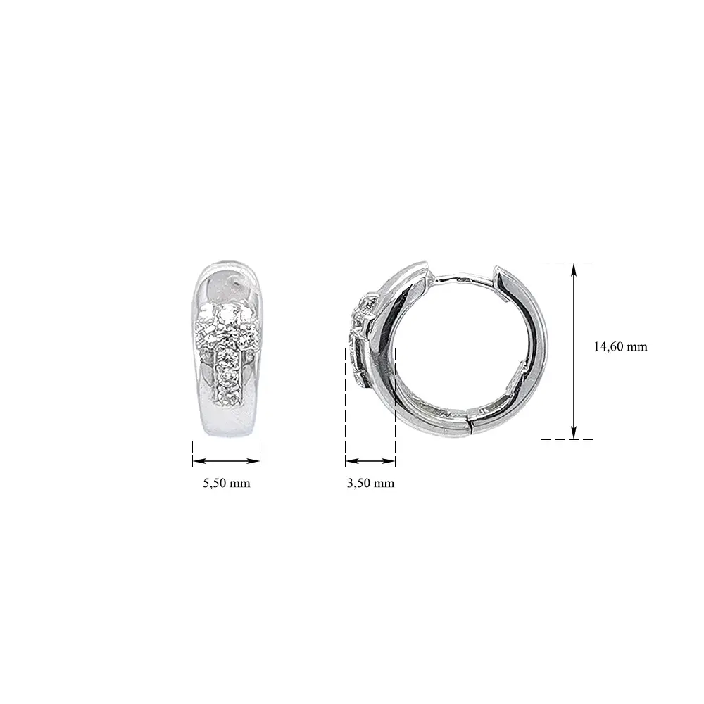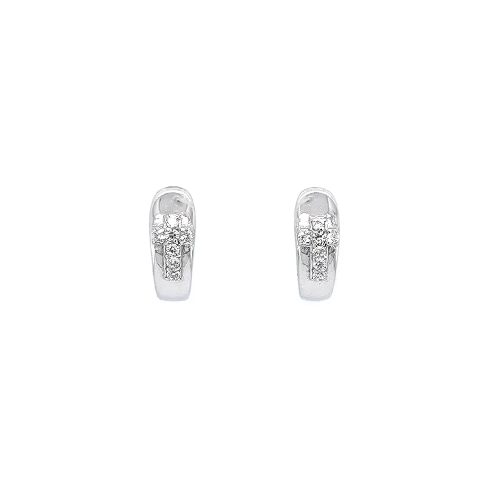 Runde Ohrringe Kreuz mit Zirkonen aus Weißgold