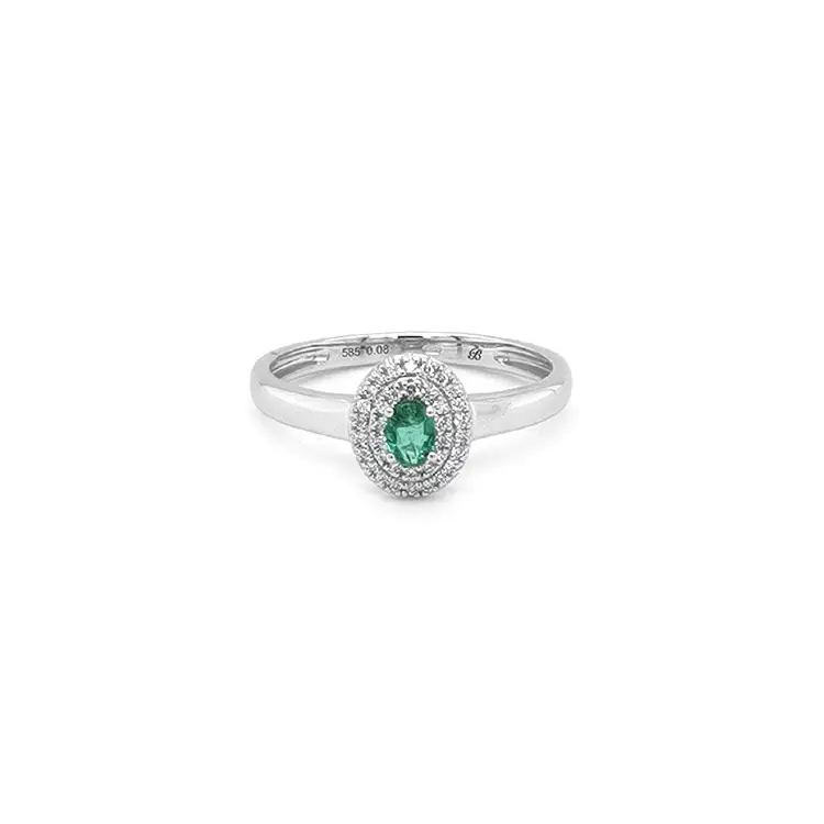Smaragdring mit Diamanten aus Weißgold