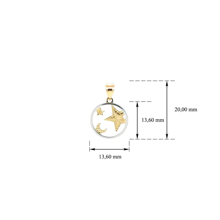 Stern und Mond-Anhänger aus kombiniertem Gold