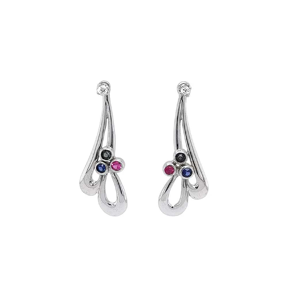 Stilvolle Weißgold-Ohrringe mit bunten Steinen
