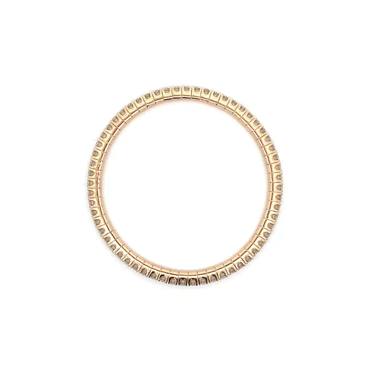 Mit einer Breite von 3,80 mm und einer Höhe von 4,30 mm sowie einer verstellbaren Länge von 18–22 cm bietet das Armband perfekten Tragekomfort. Jeder Diamant in der Farbe G und Reinheit VS spiegelt das Licht auf exquisite Weise wider, wodurch ein harmonisches Spiel aus Glanz und Bewegung entsteht. Es ist ein Stück, das dezent strahlt und dennoch Aufmerksamkeit fesselt.