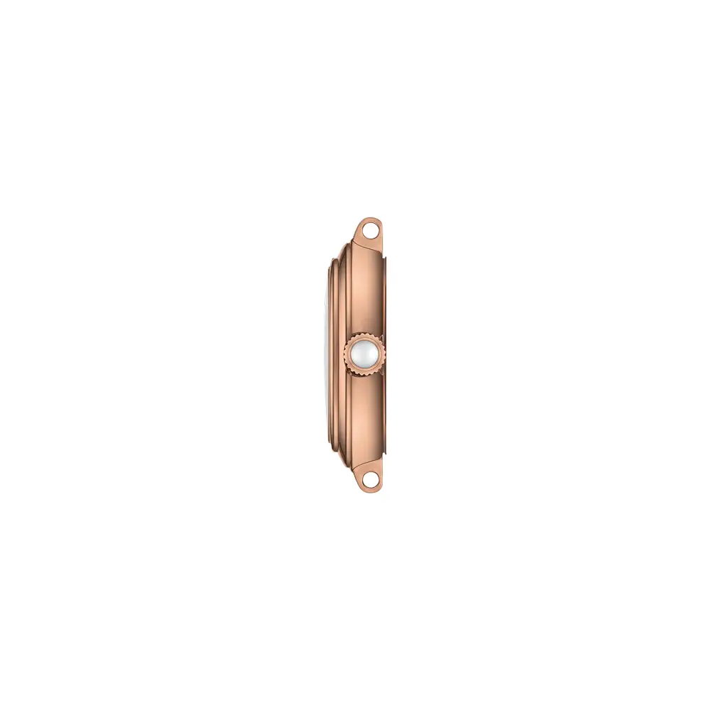 Das Modell Tissot Ballade 34 mm vereint feminine Eleganz und Klarheit, unterstrichen durch den 34-mm-Durchmesser und das zweifarbige Edelstahlgehäuse mit gelbgoldener PVD-Beschichtung. Das silberne Zifferblatt mit feinem Guilloché-Muster und applizierten Indizes verleiht der Uhr einen kultivierten Charakter, während die harmonischen Proportionen eine zeitlose Ausstrahlung sichern.