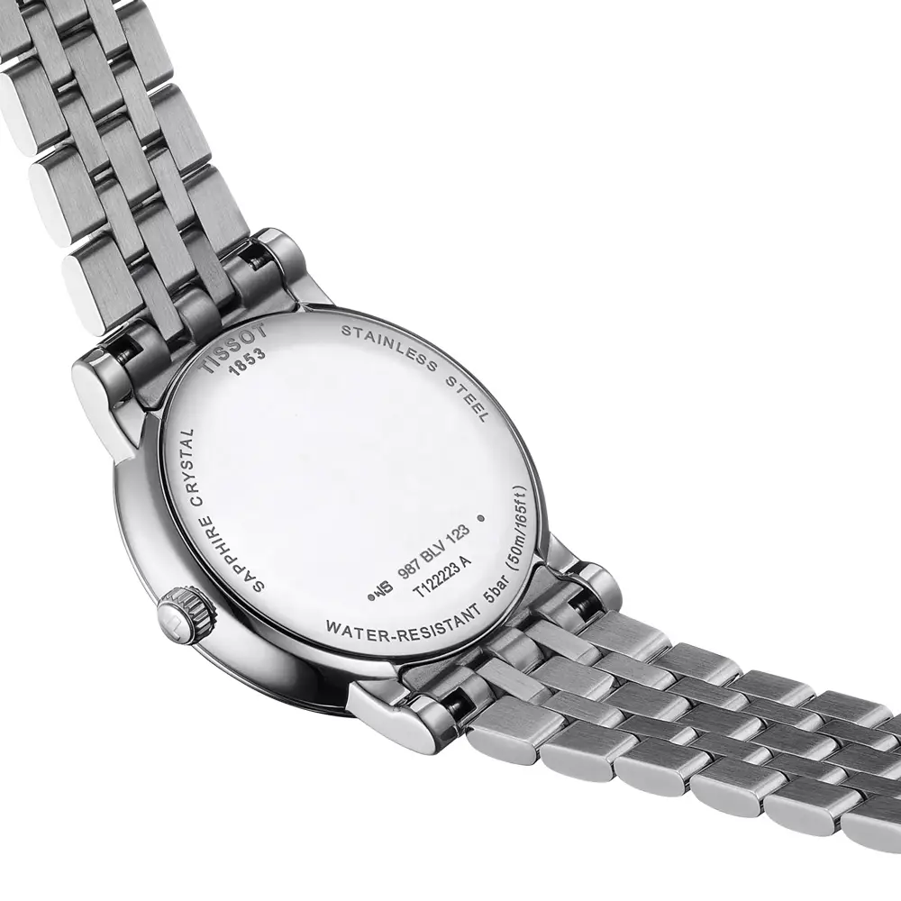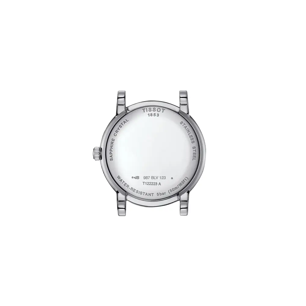 Im Inneren arbeitet das Schweizer Quarzwerk ETA F05.841, das für seine Zuverlässigkeit und geringen Wartungsaufwand bekannt ist. Eine Datumsanzeige sowie ein praktischer EOL-Indikator zur Anzeige eines niedrigen Batteriestands vervollständigen die Funktionalität. Die T122.223.11.033.00 verbindet feminine Eleganz, hochwertige Verarbeitung und nützliche Komplikationen — ideal für Frauen, die Stil und Funktion gleichermaßen schätzen.