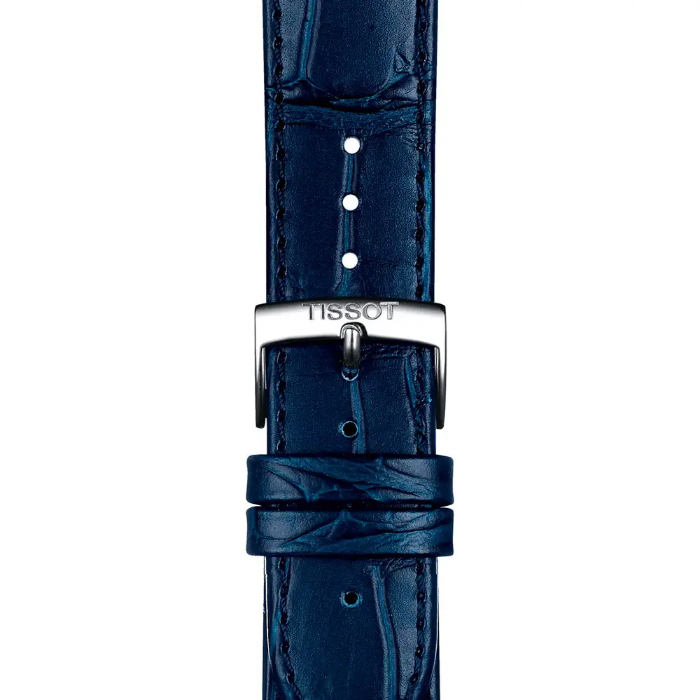 Die Tissot Carson Premium T122.410.16.043.00 ist eine elegante und raffinierte Herrenuhr, die klassisches Design mit modernen Elementen kombiniert. Dieses Modell verfügt über ein blaues Zifferblatt und ein 40 mm Gehäuse aus Edelstahl, was ihm ein elegantes Aussehen verleiht. Die Uhr hat ein kratzfestes Saphirglas und ein hochwertiges blaues Lederarmband, das perfekt zum Zifferblatt passt.
