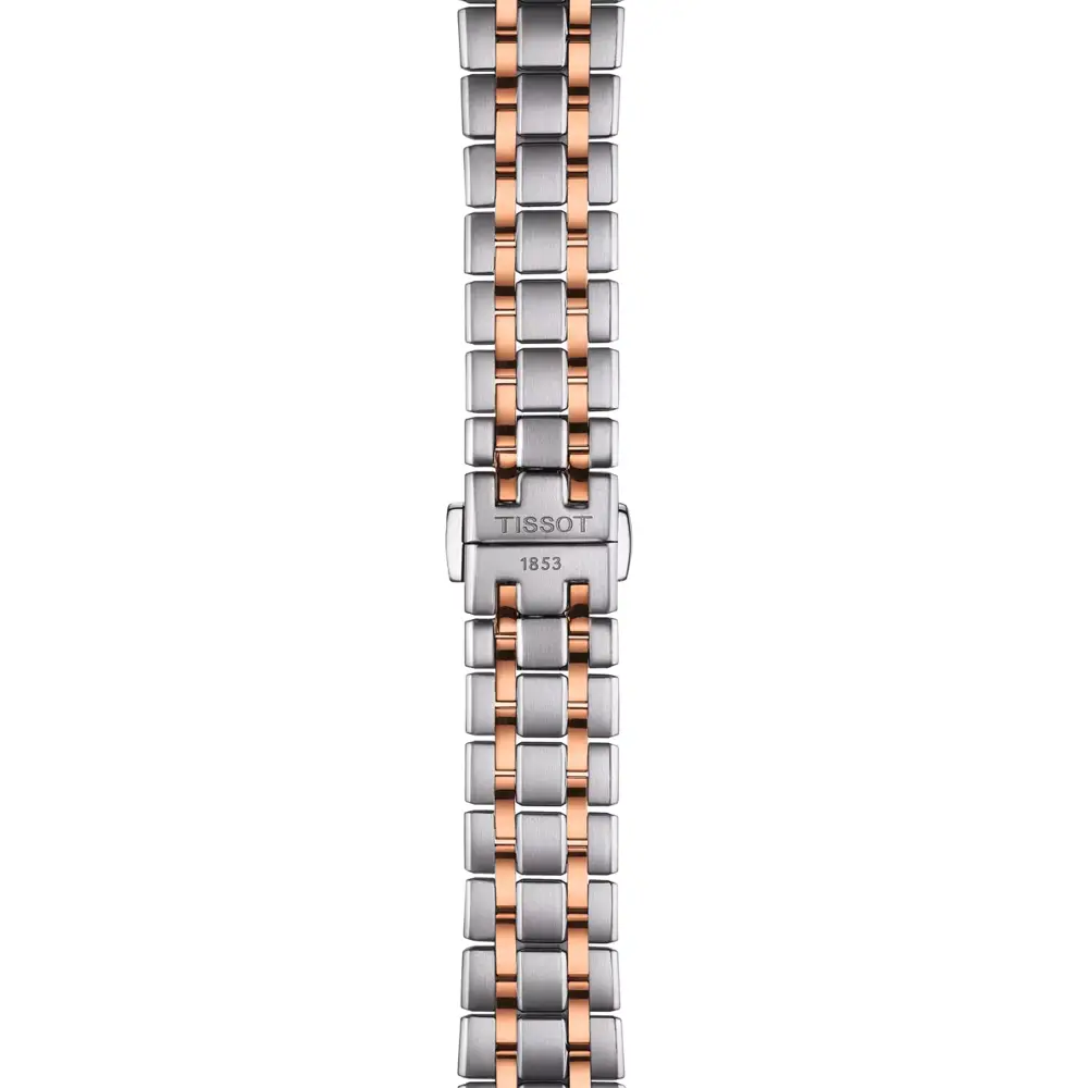 Die Tissot Chemin des Tourelles Powermatic 80 vereint zeitlose Eleganz mit moderner Schweizer Uhrmacherkunst. Ihr edles Bicolor-Design aus Edelstahl mit goldener PVD-Beschichtung unterstreicht den anspruchsvollen Charakter der Kollektion, die nach der historischen Straße benannt ist, in der Tissot gegründet wurde. Das 34-mm-Gehäuse verfügt über ein sanft gewölbtes Saphirglas mit Antireflexbeschichtung und einen klaren silbernen Zifferblatt mit Datumsanzeige.