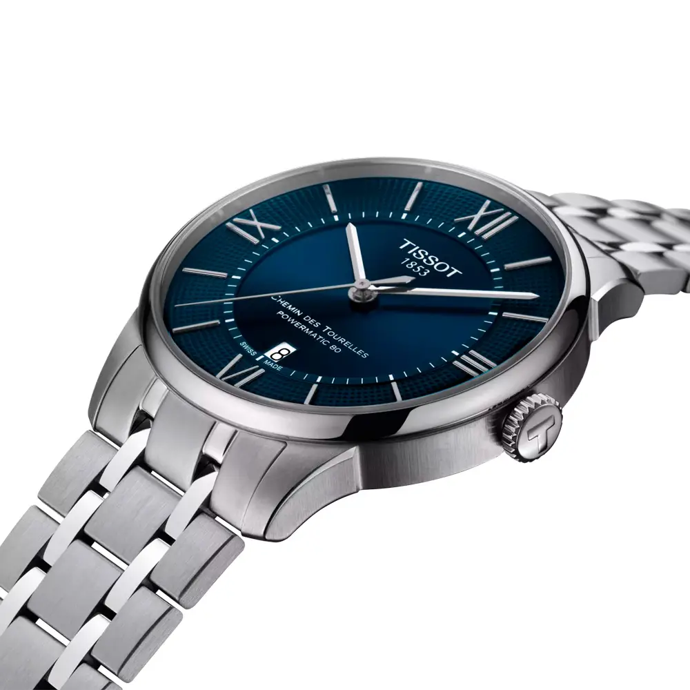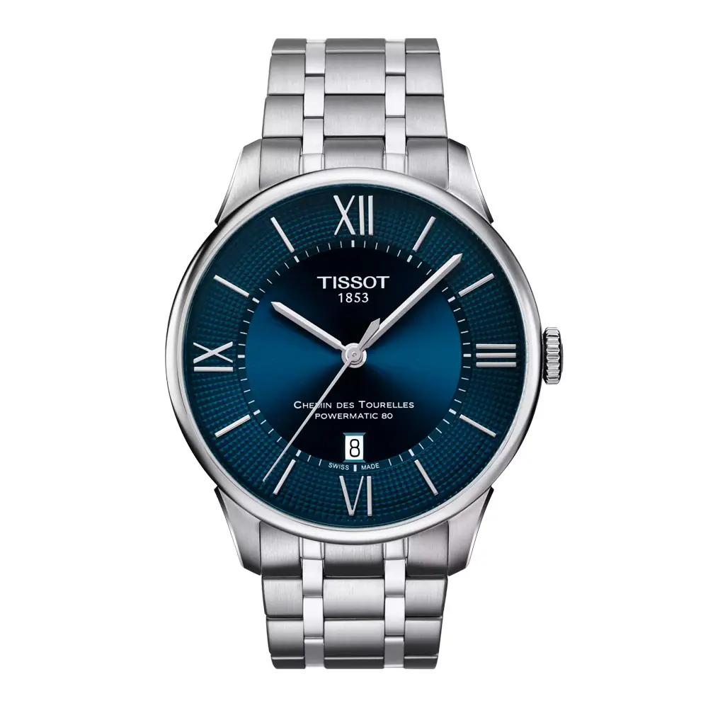 Die Tissot Chemin des Tourelles T099.407.11.048.00 vereint Schweizer Tradition, moderne Eleganz und technische Perfektion. Benannt nach der Straße Chemin des Tourelles in Le Locle, dem Gründungsort von Tissot, verkörpert dieses Modell über 170 Jahre Uhrmacherkunst. Das 42-mm-Edelstahlgehäuse wird durch ein blaues Zifferblatt mit Sonnenschliff, polierte Indizes und feine Zeiger ergänzt – für einen harmonischen und eleganten Auftritt.