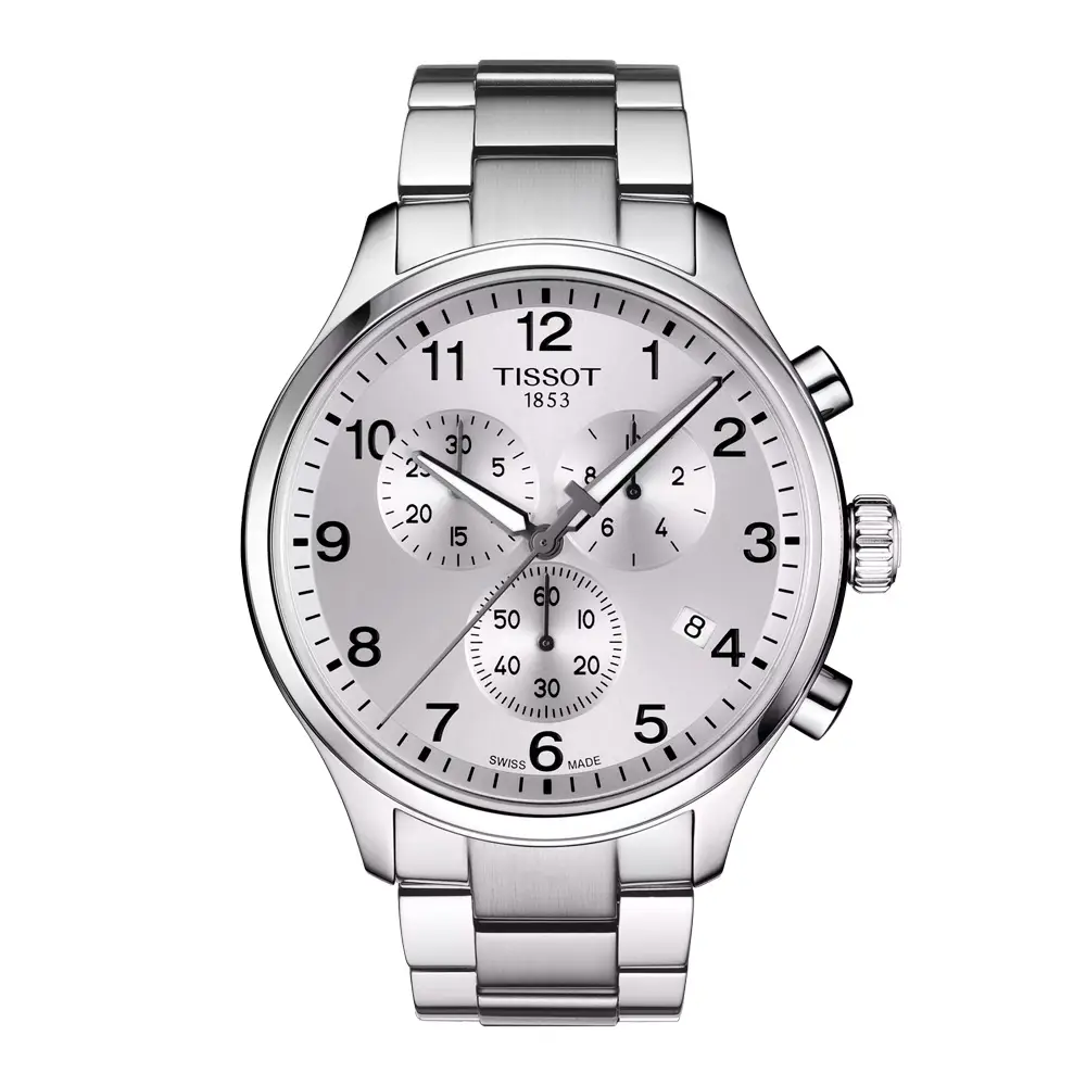 Die Tissot Chrono XL Classic T116.617.11.037.00 vereint sportliche Eleganz, modernes Design und Schweizer Präzision. Das 45-mm-Edelstahlgehäuse wird durch ein silberfarbenes Zifferblatt mit drei Chronographenzählern, polierten Zeigern und Indizes ergänzt, die der Uhr einen markanten und harmonischen Look verleihen.