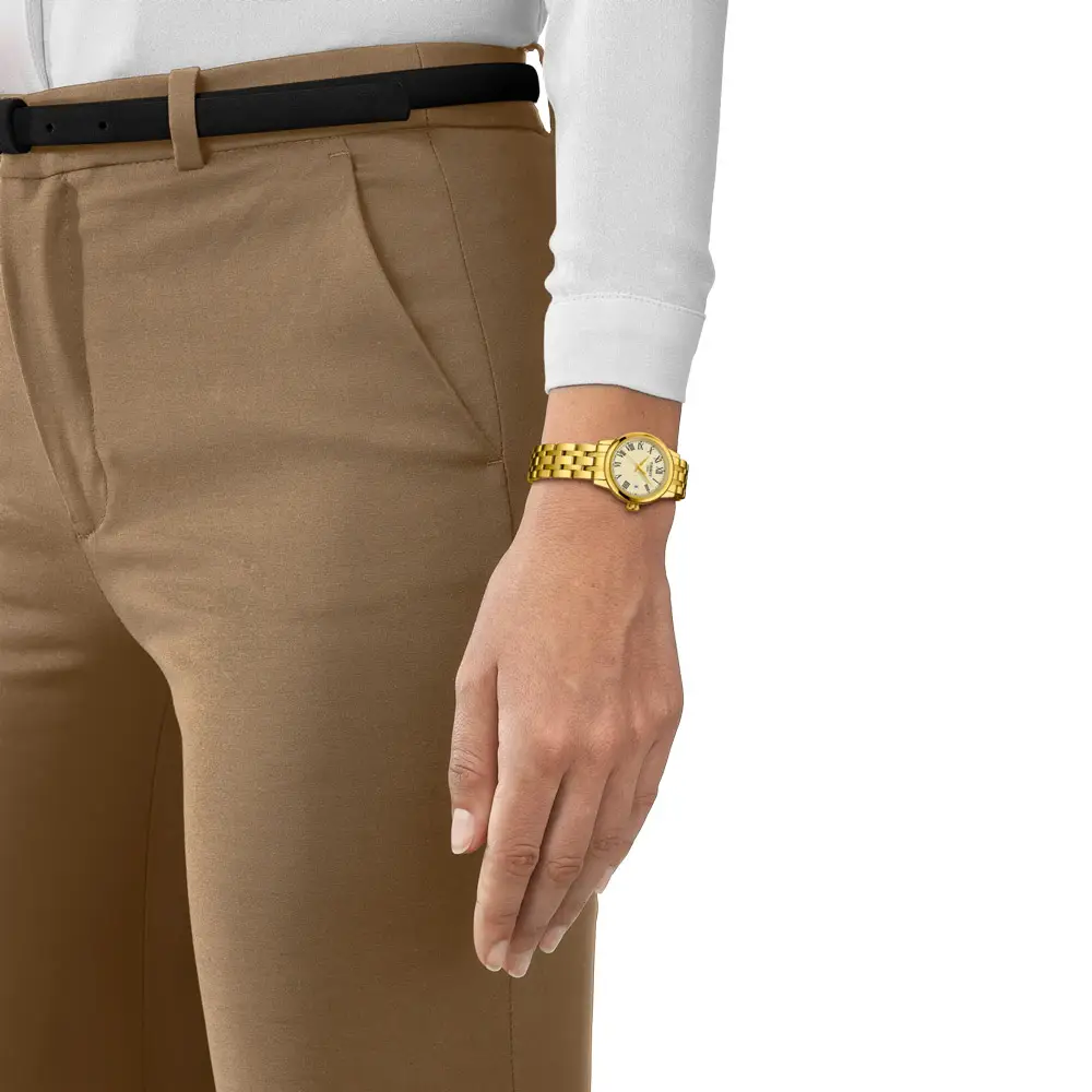 Die Tissot Classic Dream 28mm vereint zeitlose Eleganz mit einem Hauch von luxuriöser Schlichtheit. Das 28-mm-Gehäuse aus 316L-Edelstahl mit gelbgoldener PVD-Beschichtung verleiht der Uhr eine edle, schmuckartige Wirkung. Saphirglas und eine Wasserdichtigkeit von 5 bar sorgen für hohe Strapazierfähigkeit im Alltag.