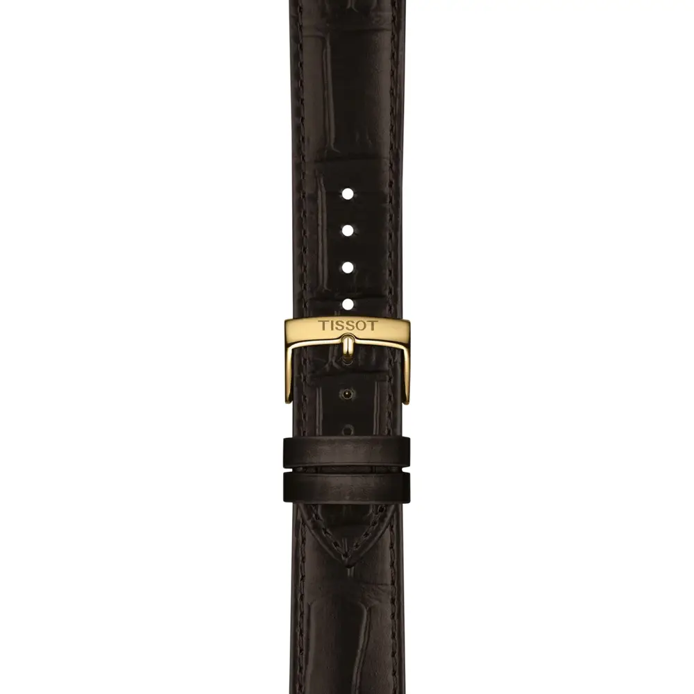 Die Tissot Classic Dream Powermatic 80 im eleganten 40-mm-Format vereint klassische Ästhetik mit moderner mechanischer Leistung. Das 316L-Edelstahlgehäuse mit gelbgoldener PVD-Beschichtung, kombiniert mit Saphirglas und einer Wasserdichtigkeit von 50 m (5 bar), macht die Uhr ideal für den Alltag wie auch für formellere Anlässe. Das braune Lederarmband mit feiner Struktur unterstreicht den warmen, zeitlosen Charakter des Modells.
