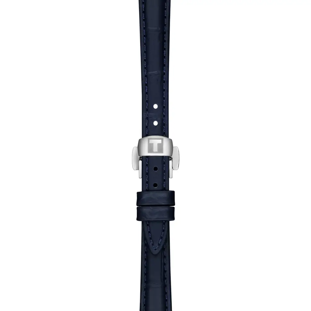 Die Tissot Desir präsentiert ein elegantes Damenmodell, das auf feinem, zeitlosem Design und kompakten Proportionen basiert. Das 28-mm-Gehäuse aus 316L-Edelstahl harmoniert perfekt mit dem raffinierten blauen Zifferblatt mit sanftem Farbverlauf, der einen modernen Akzent setzt. Das blaue Lederarmband betont den femininen Charakter, während die ungewöhnlich bei 2 Uhr positionierte, mit einem Stein verzierte Krone ein markantes Detail der Desir-Kollektion darstellt.