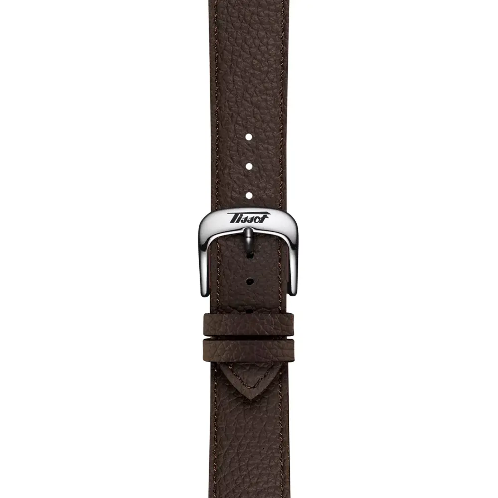 Die Tissot Heritage 1938 verbindet die authentische Atmosphäre der 1930er-Jahre mit moderner Uhrmacherkunst und vereint Vintage-Ästhetik mit Schweizer Präzision. Das 39 mm Edelstahlgehäuse wirkt elegant und ausgewogen, während das anthrazitfarbene Zifferblatt mit markanten arabischen Ziffern ein klares, hervorragend ablesbares Design bietet, das von historischen Tissot-Modellen inspiriert ist.