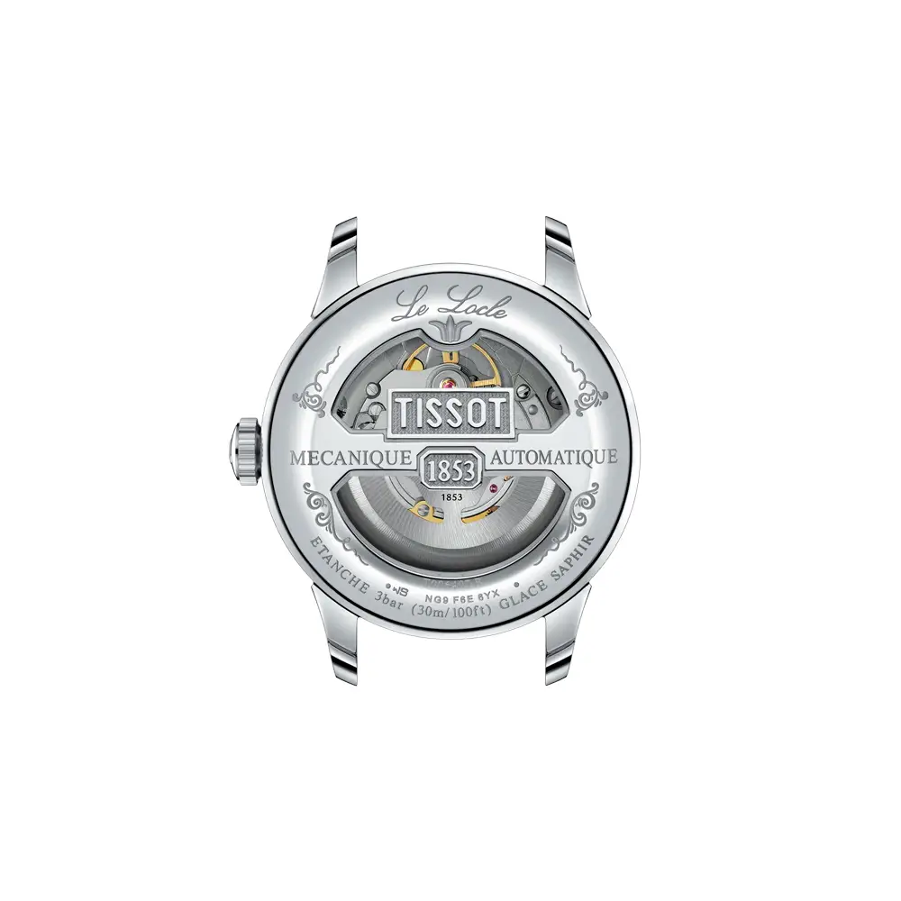 Im Inneren arbeitet das Automatikwerk Powermatic 80 mit 80 Stunden Gangreserve, das durch Präzision und Zuverlässigkeit besticht. Das kratzfeste Saphirglas schützt das Zifferblatt, während der sichtbare Gehäuseboden die feine Verarbeitung zeigt – ein Zeichen höchster Tissot-Handwerkskunst.
