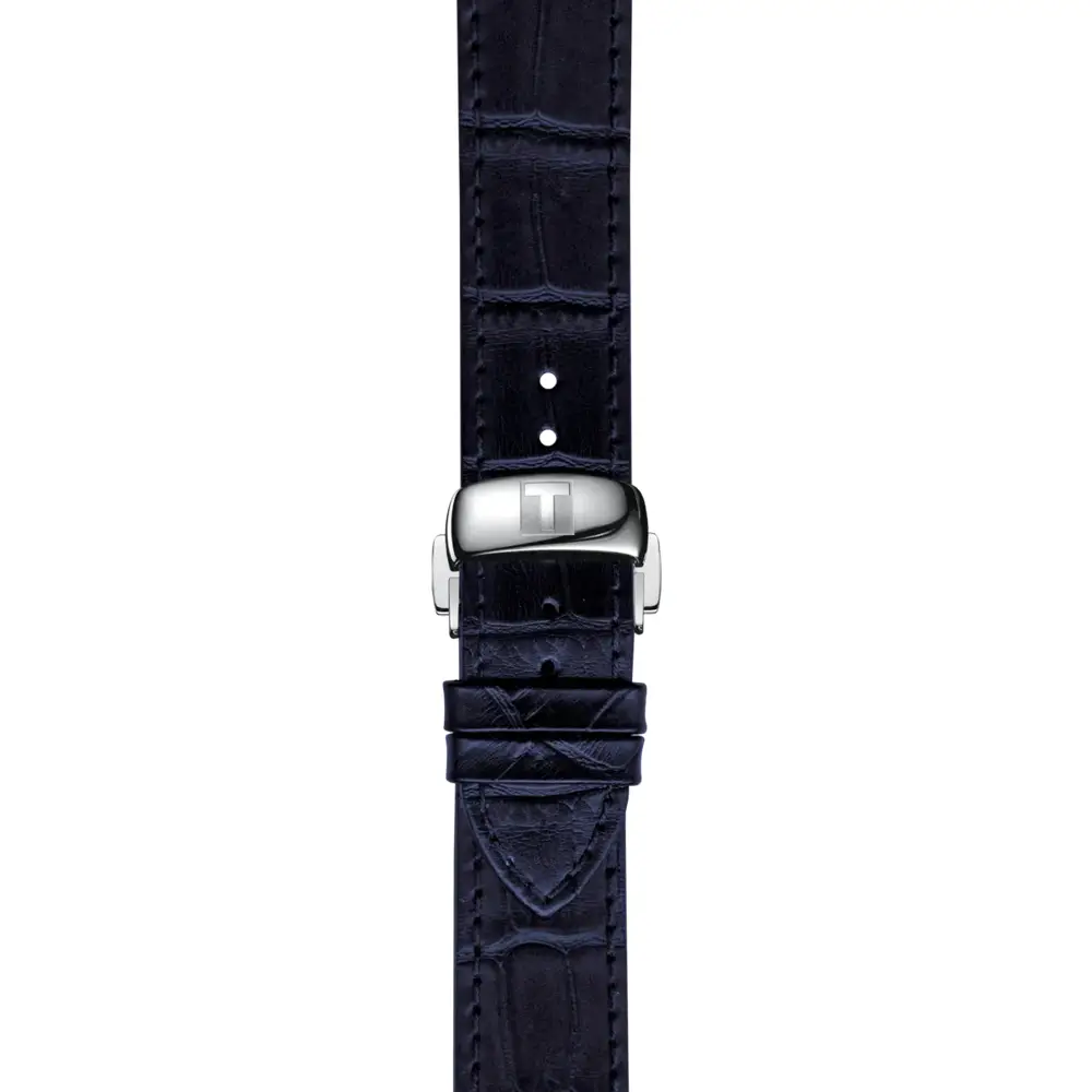 Die Tissot Le Locle Powermatic 80 ist eine klassische Herrenuhr, die die Tradition der Schweizer Uhrmacherkunst und die Eleganz der Stadt Le Locle — dem historischen Sitz von Tissot — würdigt. Das 39,3-mm-Gehäuse aus 316L-Edelstahl, kombiniert mit Saphirglas und einer Wasserdichtigkeit von 30 m (3 bar), macht die Uhr zum idealen Begleiter für den stilvollen Alltag. Das blaue Lederarmband mit Faltschließe unterstreicht den zeitlosen, gepflegten Charakter.