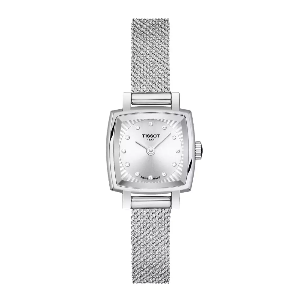 Die Tissot Lovely Square T058.109.11.036.00 verkörpert zarte Eleganz und zeitlose feminine Raffinesse. Ihr 20×20-mm-Edelstahlgehäuse (316L) wird durch ein silberfarbenes Zifferblatt mit Satinfinish ergänzt und durch kratzfestes Saphirglas geschützt.