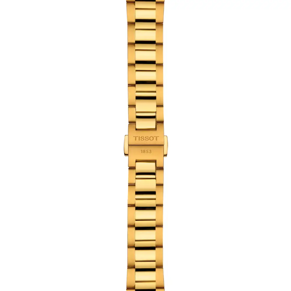 Mit einer Wasserdichtigkeit von 10 ATM (100 m) eignet sich die Uhr auch fürs Schwimmen und den Kontakt mit Wasser. Das stilvolle goldfarbene Edelstahlarmband mit gelbgoldener PVD-Beschichtung ist mit einer Faltschließe ausgestattet, die Sicherheit und Tragekomfort garantiert. Die Tissot PR 100 ist die ideale Wahl für Damen, die Eleganz, Funktionalität und Schweizer Qualität schätzen.
