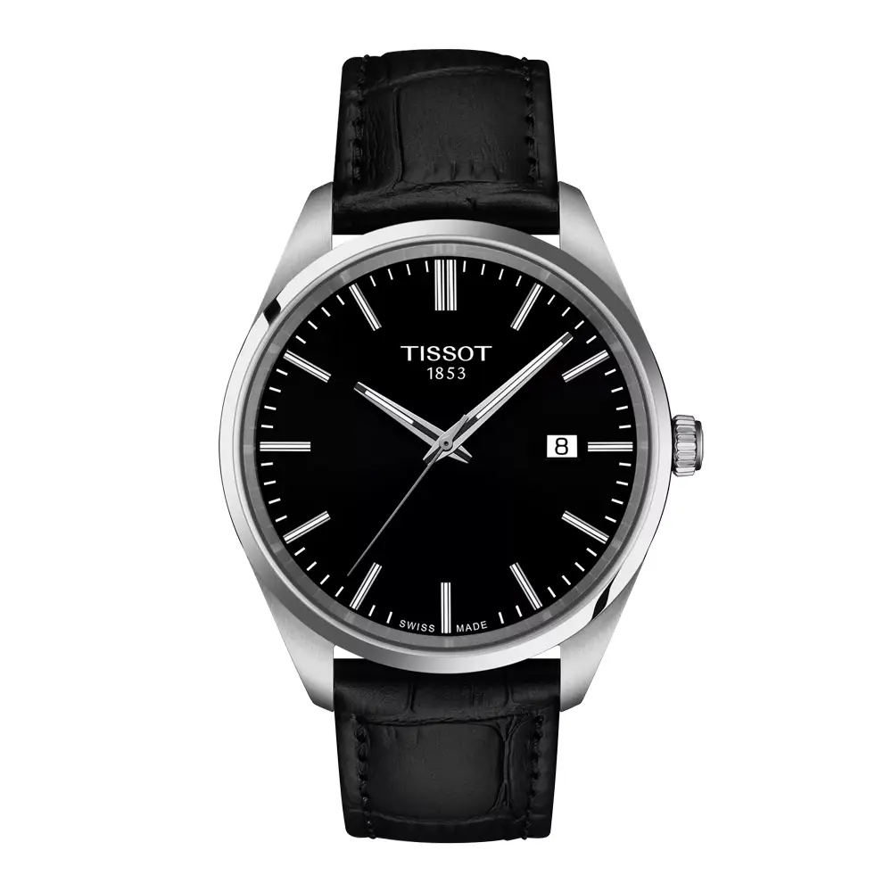 Die Tissot PR 100 Quartz (T150.410.16.051.00) vereint klassischen Stil mit moderner Zuverlässigkeit. Das 40-mm-Gehäuse aus 316L-Edelstahl in Kombination mit einem eleganten schwarzen Lederarmband eignet sich sowohl für formelle Anlässe als auch für den Alltag. Das schwarze Zifferblatt mit kontrastierenden Markierungen und Zeigern wird von kratzfestem Saphirglas geschützt, das dauerhafte Klarheit garantiert.