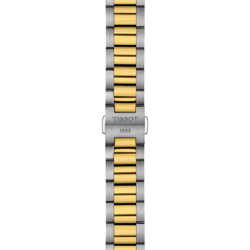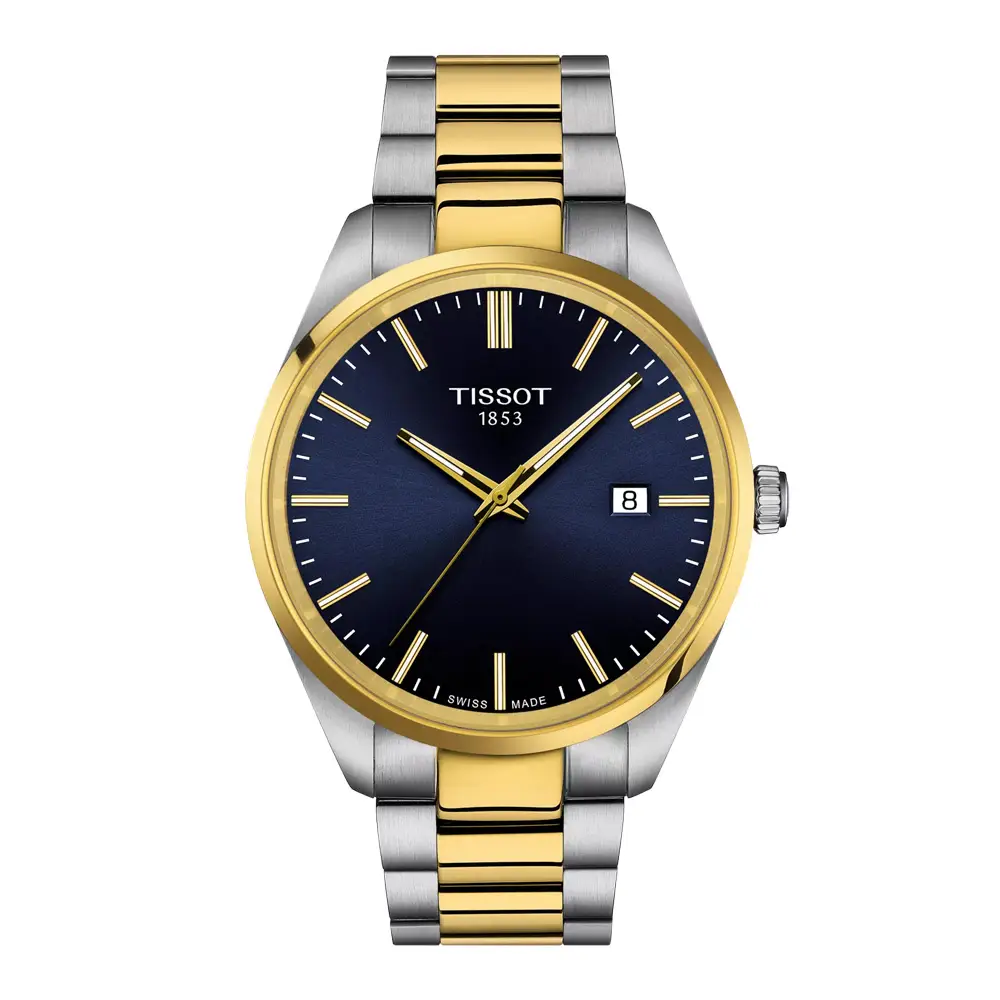 Die Herrenuhr Tissot PR 100 Quartz T150.410.22.041.00 steht für eine zeitlose Kombination aus Eleganz, sportlicher Zurückhaltung und Schweizer Präzision. Das runde Edelstahlgehäuse mit 40 mm Durchmesser, veredelt mit einer PVD-Beschichtung in Gelbgold, wirkt ausgewogen und vielseitig und eignet sich sowohl für den Alltag als auch für formellere Anlässe.