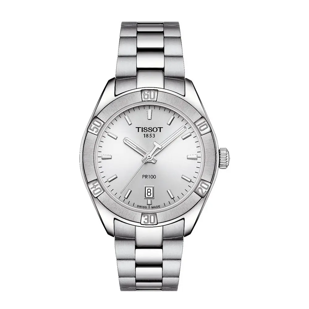Модель Tissot PR 100 Sport Chic T101.910.11.031.00 сочетает спортивную элегантность и современный стиль в гармоничном дизайне. Корпус из нержавеющей стали 316L диаметром 36 мм дополнен серебристым циферблатом с солнечным узором и стальным браслетом с полированными и матовыми звеньями, создавая универсальный и изысканный образ.