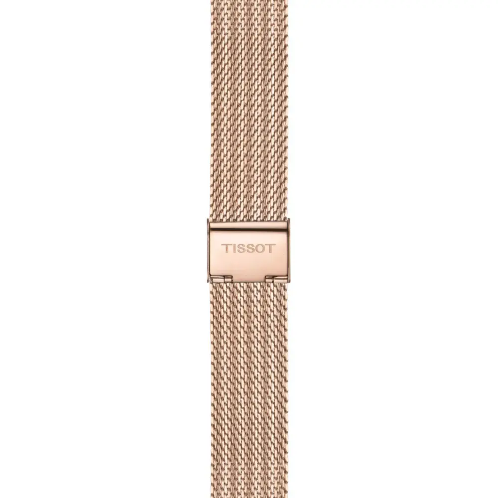 Die Tissot PR 100 Sport Chic Chronograph T101.917.33.031.00 verbindet perfekt sportliche Dynamik mit subtiler femininer Eleganz. Das 38-mm-Edelstahlgehäuse, das durch eine elegante roségoldene PVD-Beschichtung ergänzt wird, verleiht der Uhr einen modernen und raffinierten Charakter.