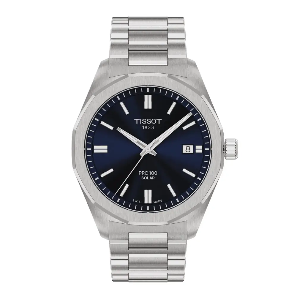 Zu den weiteren Merkmalen gehören eine Wasserdichtigkeit bis 100 Meter (10 bar), ein Edelstahlarmband mit Schnellwechselsystem und eine Doppelfaltschließe mit Drückern. Die Tissot PRC 100 Solar ist die ideale Wahl für Männer, die eine elegante Uhr mit moderner Technologie und hohem Tragekomfort suchen.