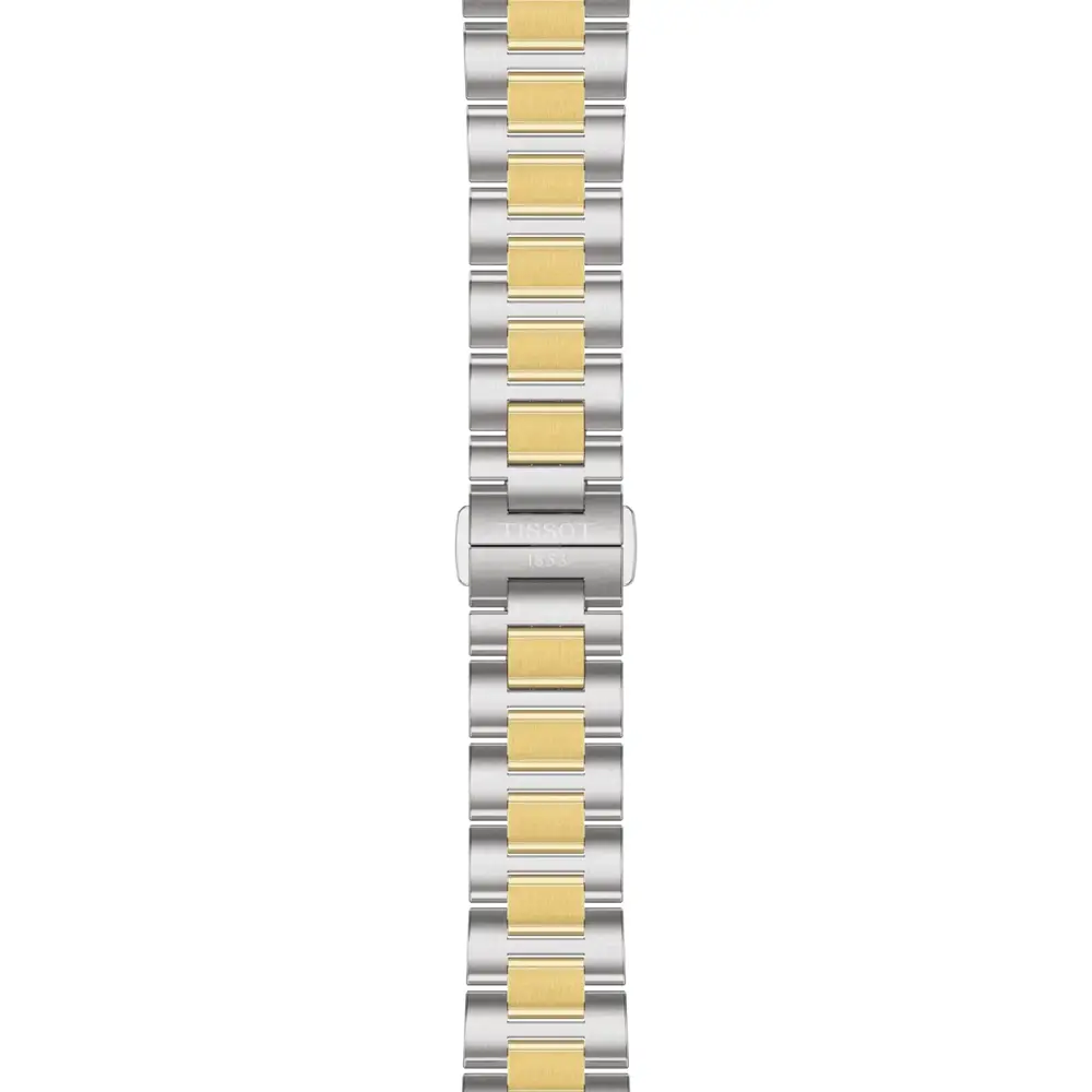 Das Highlight ist das silberne Zifferblatt mit eleganten Indizes, ergänzt durch Zeiger mit Super-LumiNova® für gute Ablesbarkeit. Eine Datumsanzeige bei 3 Uhr erhöht die Funktionalität. Die Uhr ist mit einem zweifarbigen Edelstahlarmband (Stahl + PVD-Gold) mit Faltschließe und Schnellwechselsystem ausgestattet.