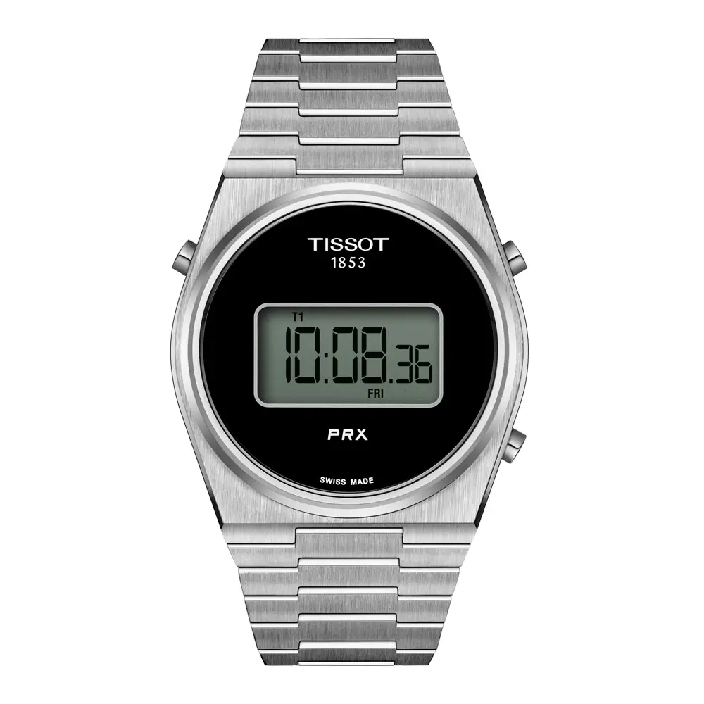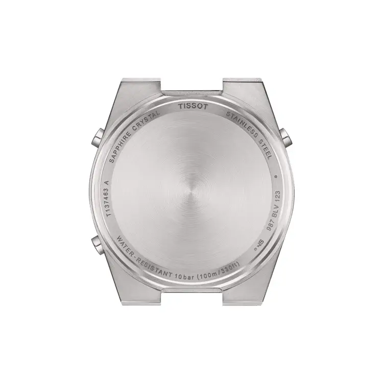 Die Tissot PRX Digital T137.463.11.050.00 ist eine moderne Neuinterpretation des ikonischen Designs von 1978, die Retro-Ästhetik mit zeitgemäßer digitaler Technologie verbindet. Das 40 mm Edelstahlgehäuse verleiht der Uhr einen robusten, aber eleganten Charakter, während das schwarze LCD-Display durch Saphirglas mit Antireflexbeschichtung geschützt wird und hervorragende Ablesbarkeit sowie Kratzfestigkeit bietet.