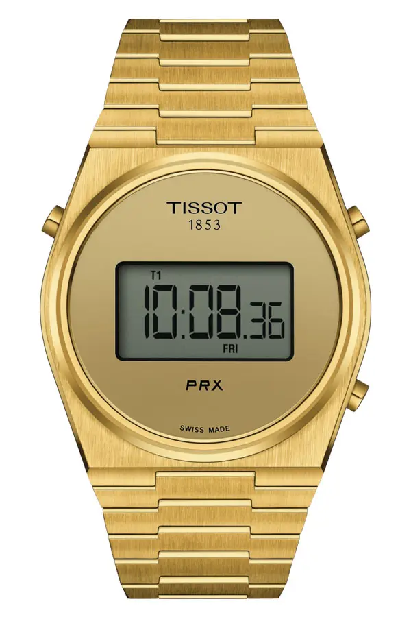 Die PRX Digital ist bis zu 100 Meter (10 Bar) wasserdicht, was sie auch zum Schwimmen und für andere Wasseraktivitäten geeignet macht. Die Uhr hat ein Armband aus Edelstahl in Goldfarbe mit einem Schnellwechselsystem und einer Schmetterlingsfaltschließe mit Drückern, was einen komfortablen Sitz und einen einfachen Bandwechsel gewährleistet.
