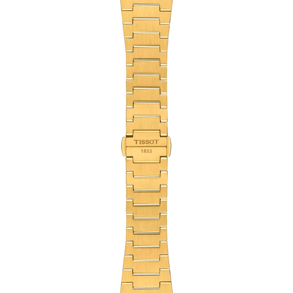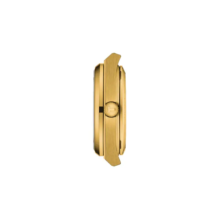 Die Tissot PRX Powermatic 80 35mm T137.207.33.021.00 vereint moderne Eleganz mit der Präzision der Schweizer Uhrmacherkunst. Das runde Edelstahlgehäuse mit 35 mm Durchmesser und Gelbgold-Beschichtung wird durch ein robustes Saphirglas geschützt, unter dem sich ein goldfarbenes Zifferblatt mit feiner Textur befindet. Eine praktische Datumsanzeige bei 3 Uhr steigert die Funktionalität.