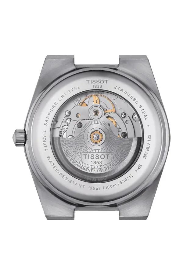 Im Inneren arbeitet das Automatikwerk Powermatic 80 mit 80 Stunden Gangreserve und einer Nivachron-Spirale, die magnetische Einflüsse reduziert und die Präzision verbessert. Durch den sichtbaren Gehäuseboden lässt sich die feine Verarbeitung des Uhrwerks bewundern – ein Markenzeichen der Tissot-Qualität.