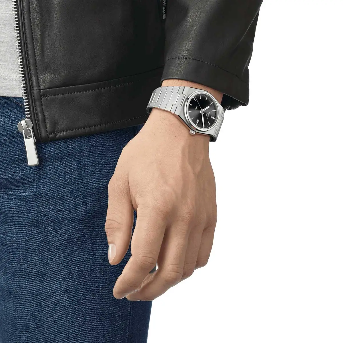 Die Tissot PRX T137.410.11.051.00 vereint Retro-Eleganz der 70er Jahre mit moderner Technologie und Schweizer Präzision. Das 40-mm-Edelstahlgehäuse wird durch ein integriertes Edelstahlarmband ergänzt, dessen feine Glieder perfekt am Handgelenk anliegen. Die Doppelfaltschließe sorgt für sicheren und angenehmen Tragekomfort und betont den eleganten Stil der Uhr.
