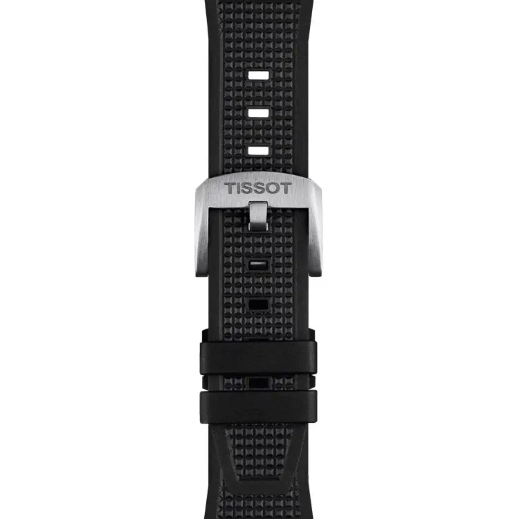 Das schwarze Kautschukarmband sorgt für hohen Tragekomfort und ist mit einer Dornschließe ausgestattet, die sicheren Halt garantiert.