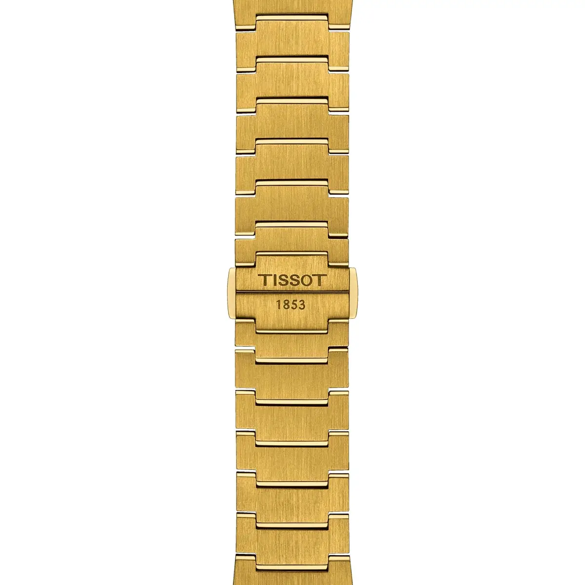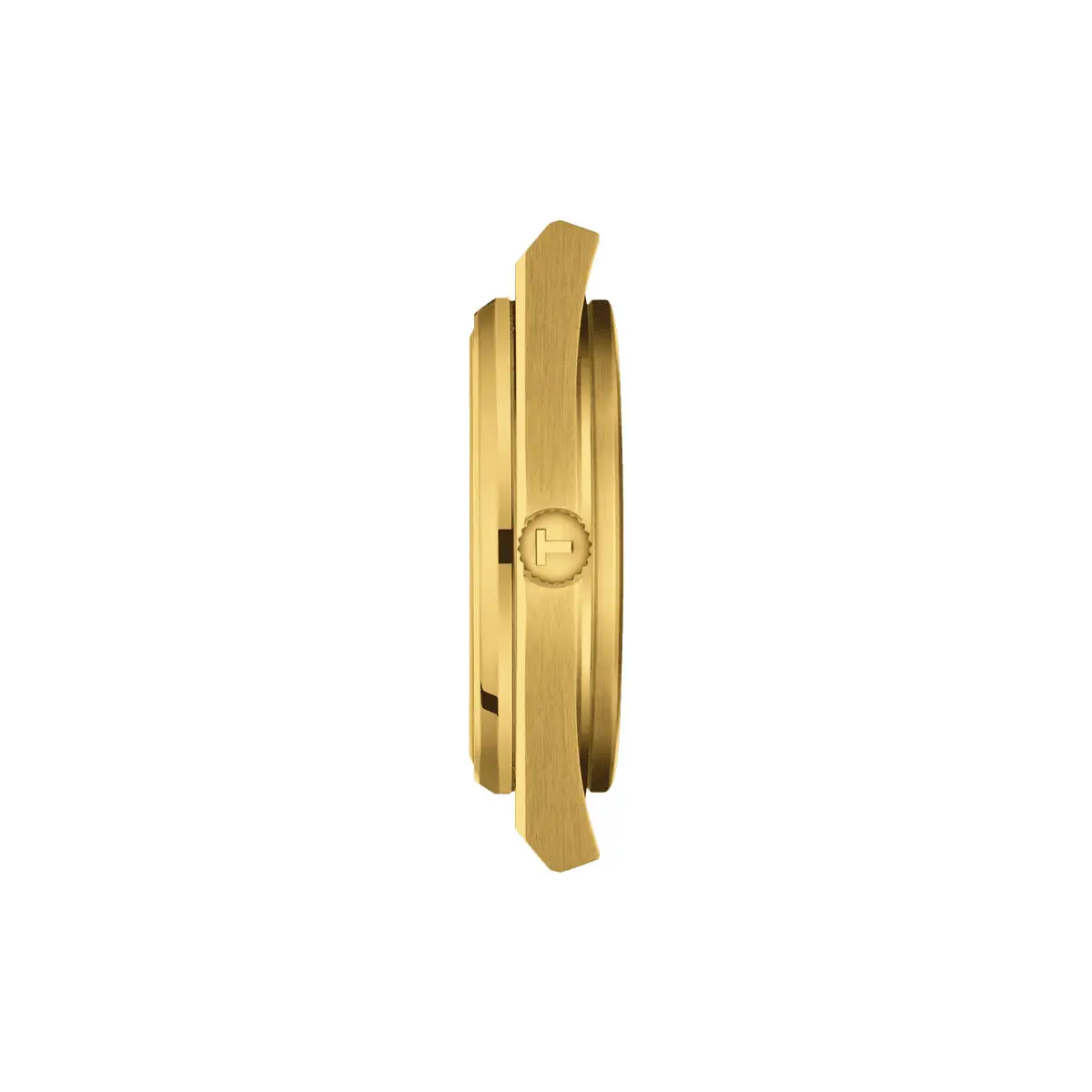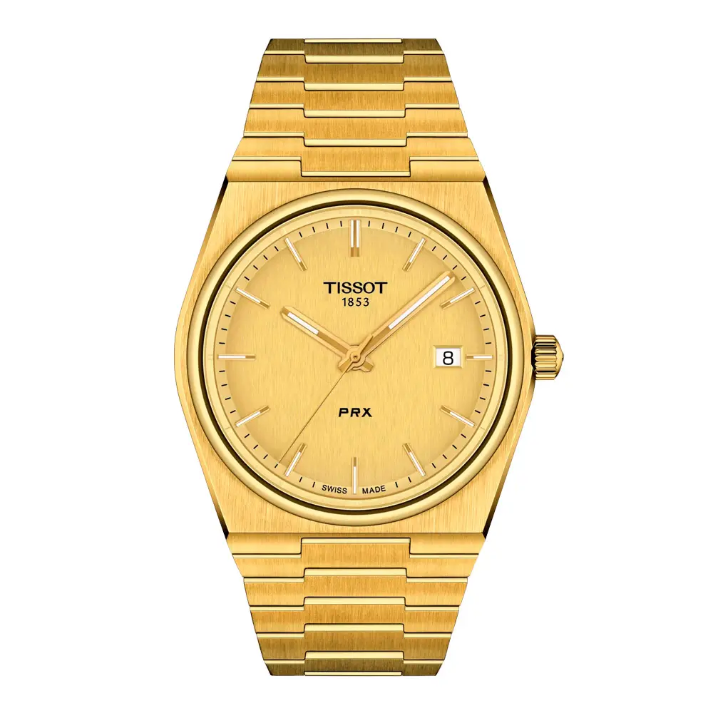Die Tissot PRX Quartz 40mm im luxuriösen Golddesign vereint zeitlose Eleganz mit moderner Funktionalität. Die Uhr verfügt über ein 40 mm rundes Edelstahlgehäuse mit gelbgoldener PVD-Beschichtung, das durch ein äußerst widerstandsfähiges Saphirglas geschützt ist und hervorragenden Kratzschutz bietet.