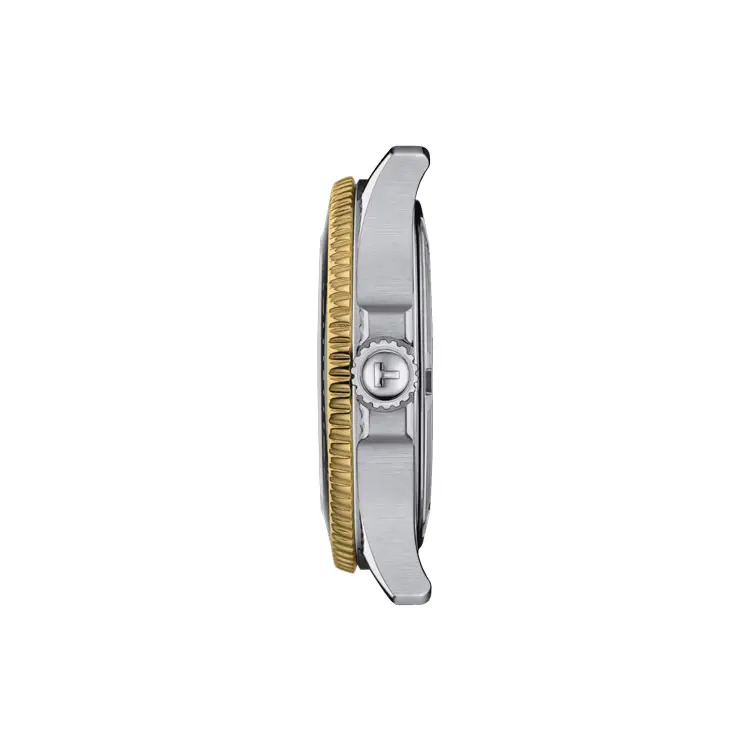 Die Tissot Seastar 1000 36mm T120.210.21.051.00 vereint sportliche Eleganz und Taucherfunktionalität in einem Modell. Das kompakte 36-mm-Gehäuse aus 316L-Edelstahl verfügt über ein bicolor Design mit roségoldenen Akzenten und kombiniert so die Strapazierfähigkeit professioneller Uhren mit einem Hauch von Luxus und Weiblichkeit.